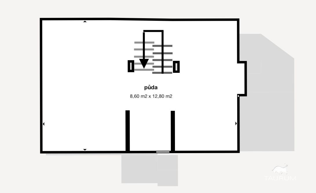 Prostorná půda o výměře 110 m² pak nabízí možnost vybudování dalších obytných prostor.