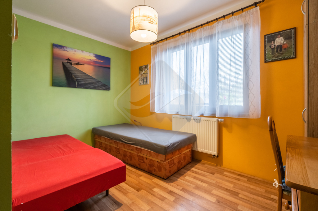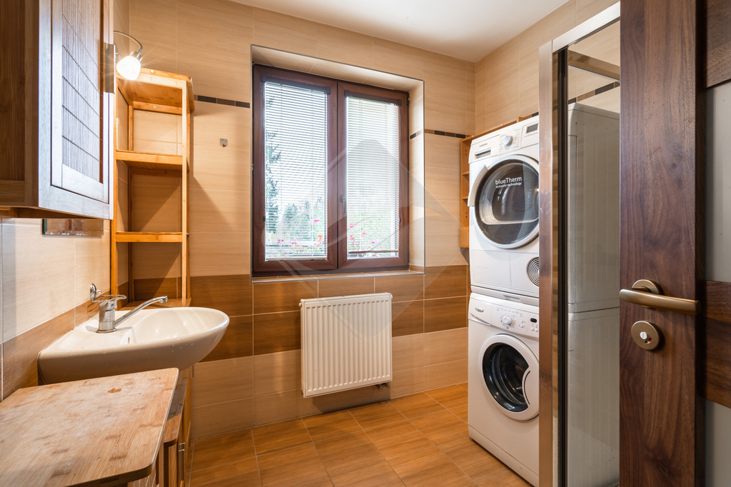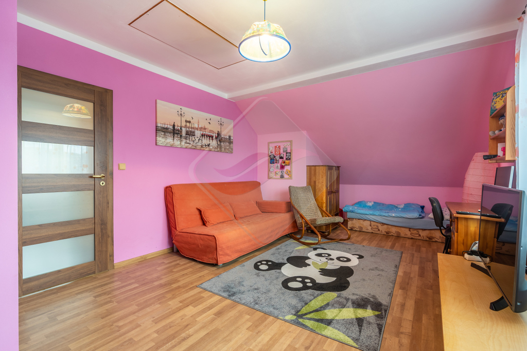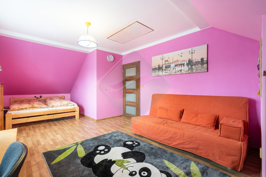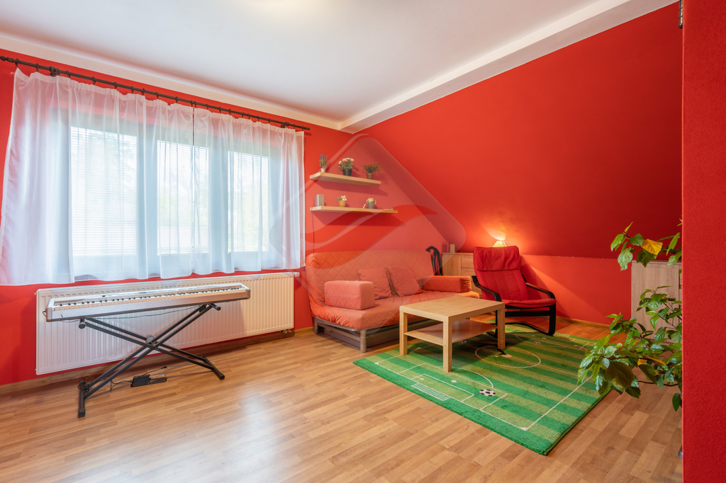 V přízemí se nachází předsíň, ložnice, prostorný obývací pokoj s kuchyňským koutem s výstupem do zahrady, koupelna, WC, technická místnost a komora. V patře jsou dva velké dětské pokoje a koupelna s WC.