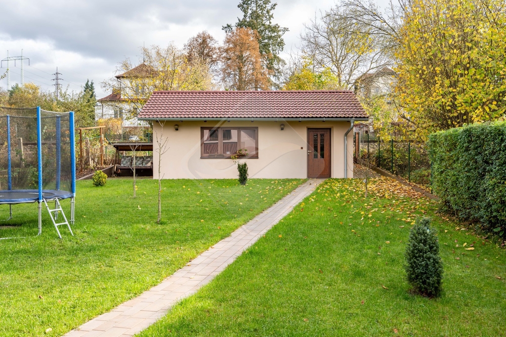 Dům stojí v klidné slepé ulici. Za zahradním domkem je trať – posázavský Pacifik, dvou vagónový vlak projíždí jednou za dvě hodiny.