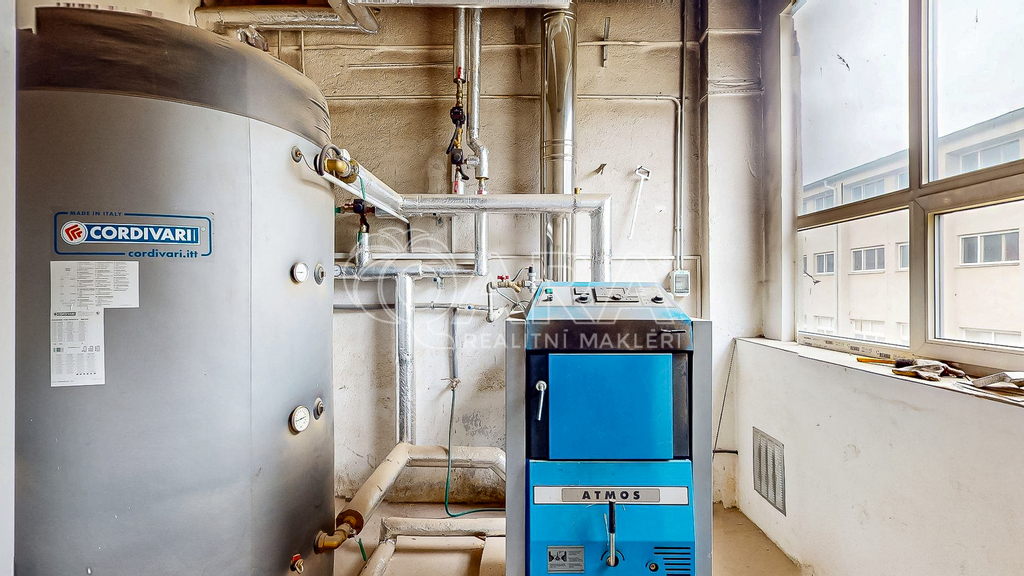 Nemusíte řešit nákladné rekonstrukce, klíčové technologie jsou již hotové. K dispozici je nová elektroinstalace s dostatečnou kapacitou (nová rozvodna příkon 3 × 160 A, sazba C02D), nové rozvody vody i kanalizace napojené na čističku v areálu. O vytápění se stará nový kotel na tuhá paliva s možností využití vlastních briket, přičemž systém je stavebně připraven i na případné napojení tepelného čerpadla. Stropy s výškou 3,8 m jsou zateplené foukanou izolací (25–30 cm) pro lepší tepelný komfort, přičemž zbývá dokončit jen zhruba třetinu haly. Objekt má nová plastová okna a fasáda je připravena na zateplení (ideální pro čerpání dotací v kombinaci s fotovoltaikou).