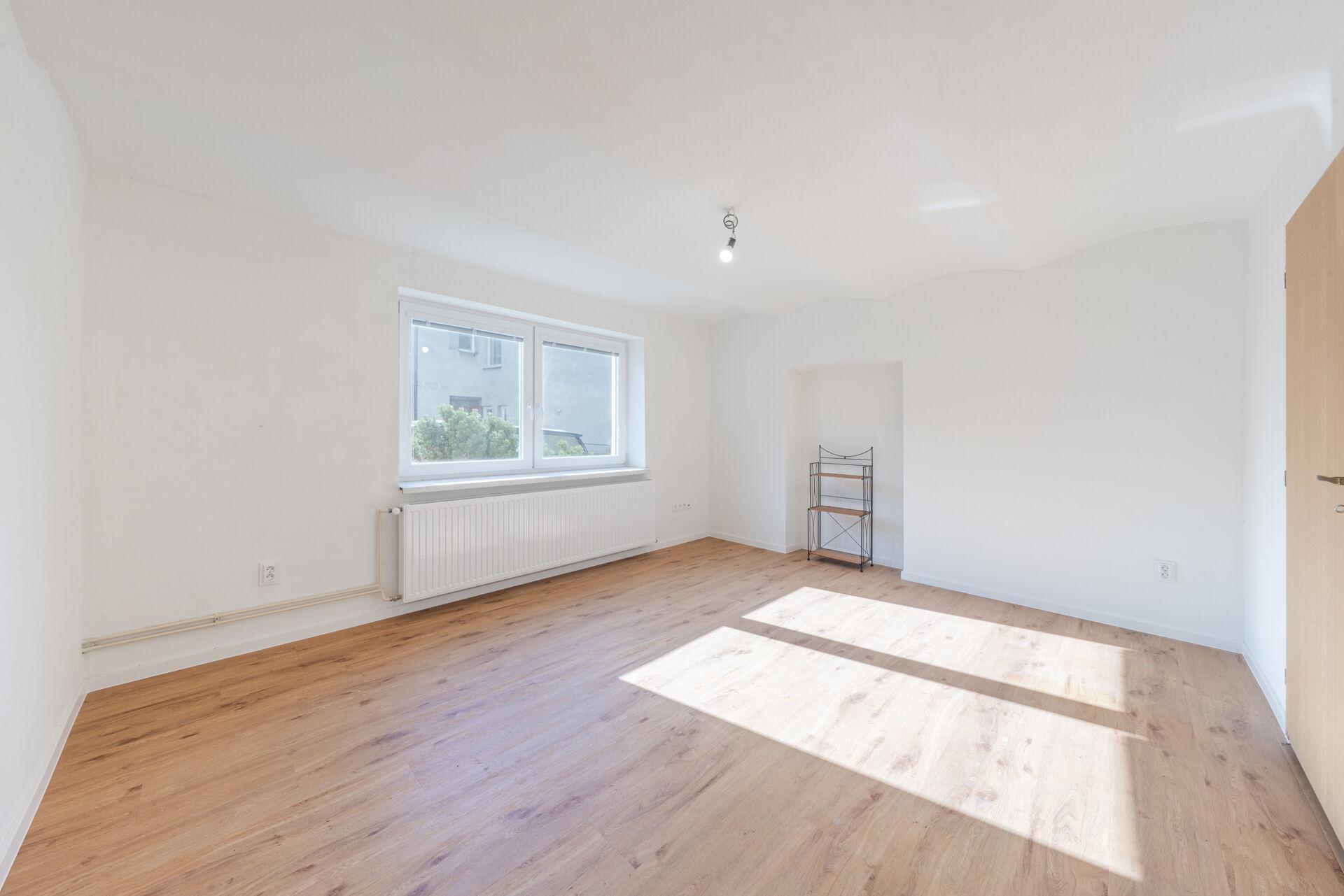 Přízemí — 2+1 (57 m²) Kompletně zrekonstruovaný byt v roce 2025. Vše je nové — podlahy, kuchyň, koupelna, elektroinstalace i omítky.