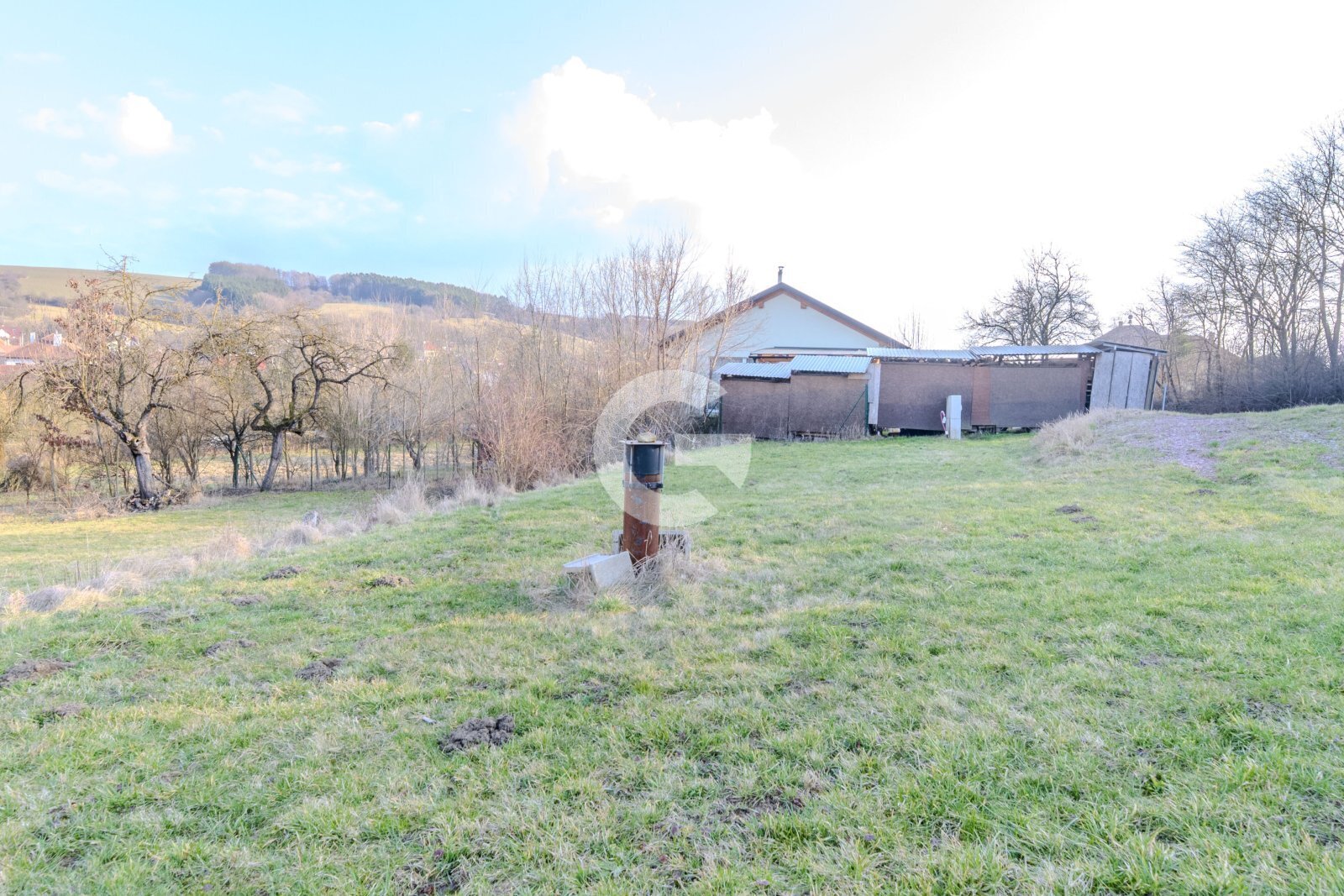 Velkou výhodou je připravenost inženýrských sítí přímo na pozemku – k dispozici je elektřina, plyn a vrtaná studna, což výrazně usnadňuje a urychluje budoucí výstavbu.