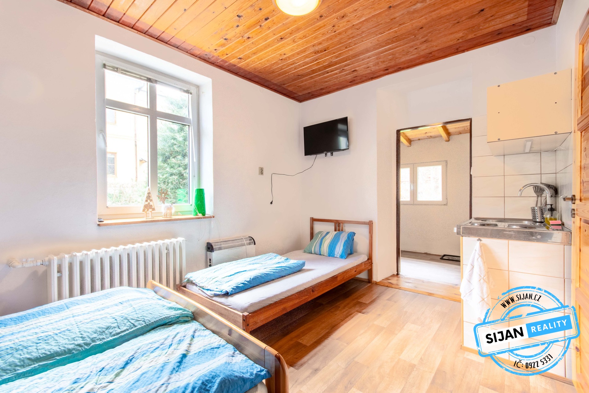 Součástí objektu je zmodernizovaný apartmán s vlastní kuchyňkou, koupelnou a teráskou se vstupem na zahradu.
