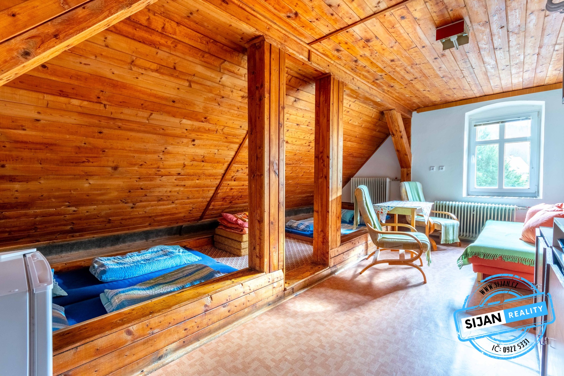 Půdní prostor vhodný k vestavbě dalších pokojů či apartmánů.