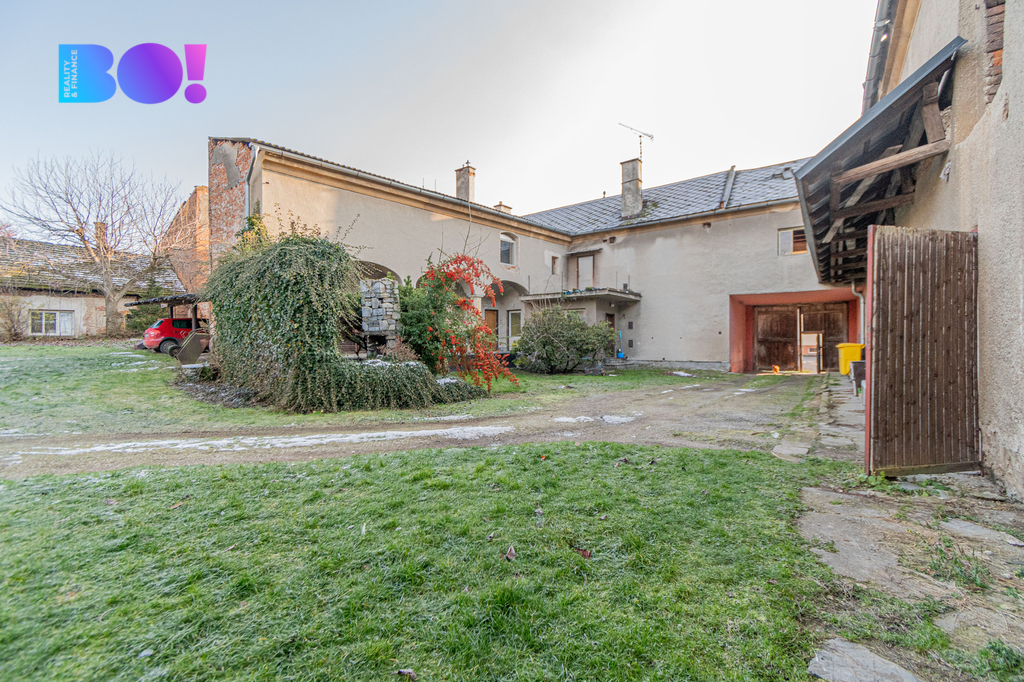 K domu přiléhá prostorná zahrada, garáž, chlévy / hospodářské budovy – výborné pro rozšíření bydlení, dílny, skladu, podnikání nebo menší provozovnu.