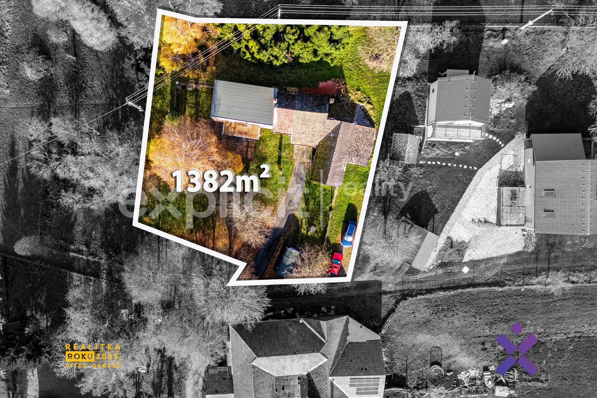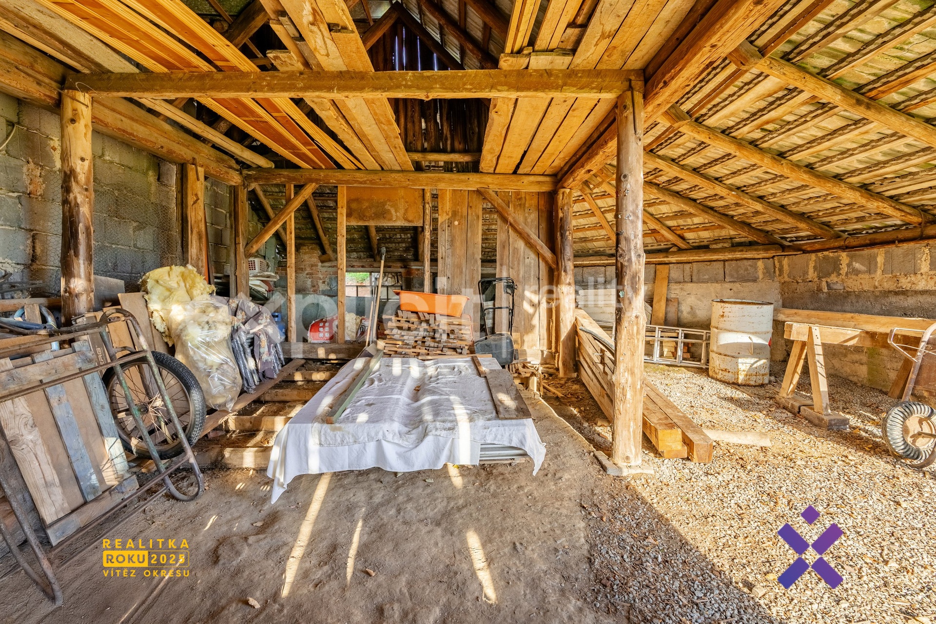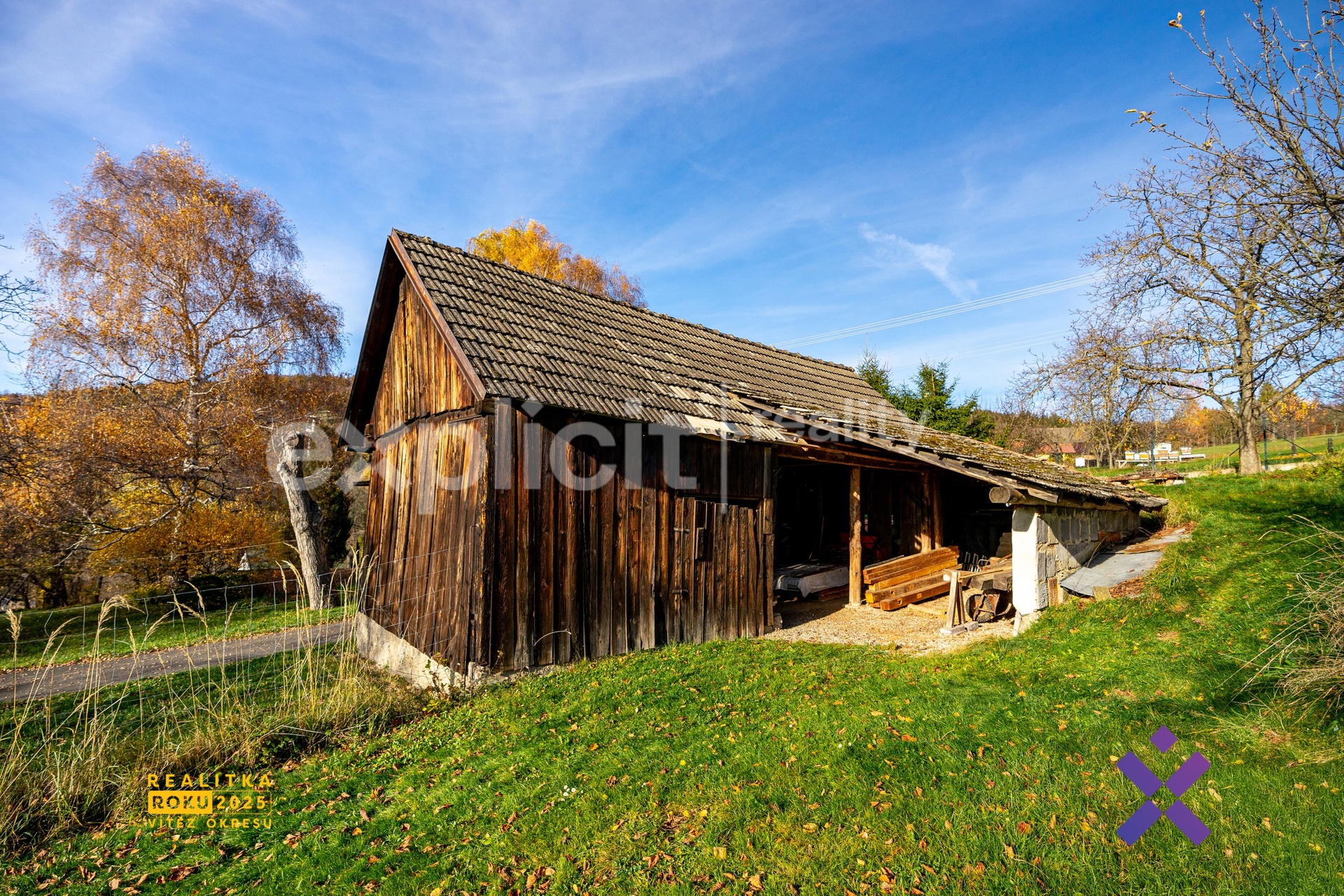 K nemovitosti náleží pozemek o celkové výměře 1 312 m², jehož součástí je prostorná oplocená zahrada vhodná k relaxaci, zahradničení i rodinným aktivitám. Na pozemku se dále nachází dřevěná stodola, kterou lze využít jako dílnu, sklad nebo ji přestavět na venkovní posezení. Součástí je také garáž a zajištěný příjezd po asfaltové komunikaci.