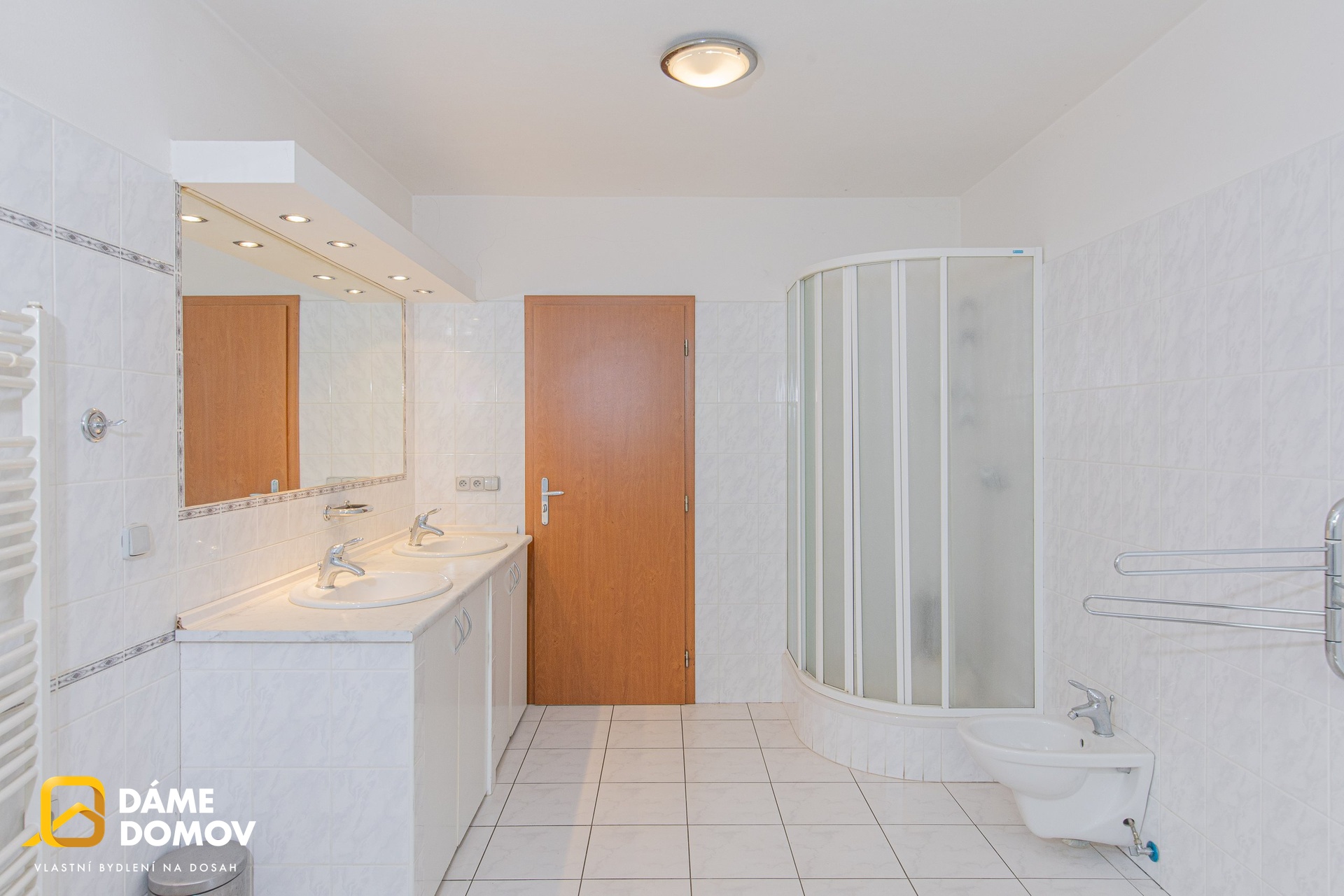 Ve 2. patře se nachází podkrovní byt 4+1 – kuchyň s ostrůvkem, velký obývací pokoj, tři ložnice, šatna, technická místnost a koupelna se sprchou, vanou a WC. Tento byt má samostatný elektroměr a hygienické zázemí.