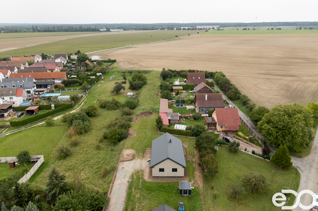 Užitná plocha domu je 96,9 m² a náleží k němu prostorná zahrada o rozloze 1 860 m². Ve vlastnictví je také příjezdová cesta přibližně 210 m². Do domu je zavedena elektřina, voda a odpad je napojen na veřejnou kanalizaci. Vytápění bude řešeno podlahovým topením a tepelným čerpadlem.