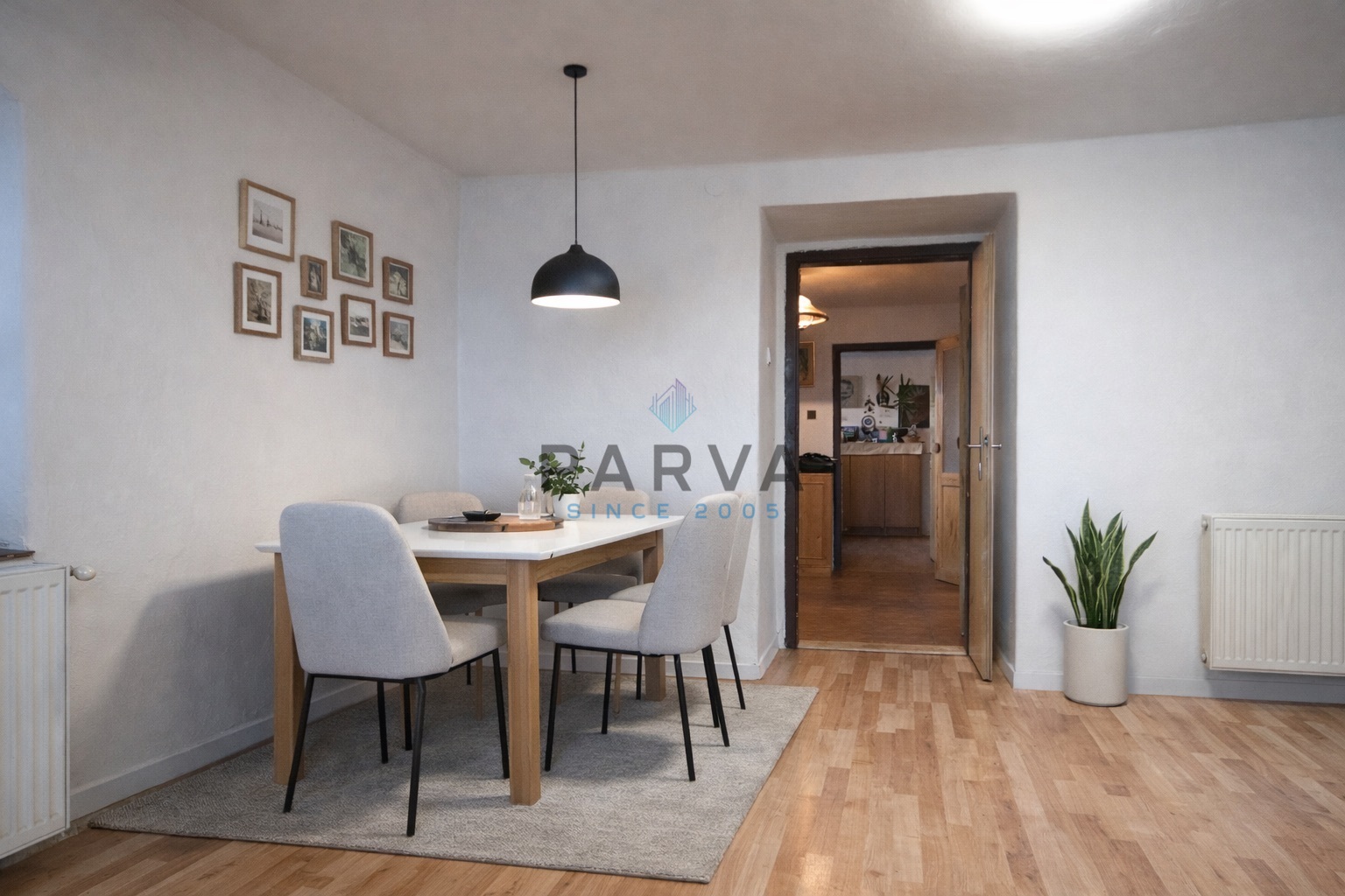 Dva útulné pokoje a v obývacím pokoji je průchod na krbová kamna.
