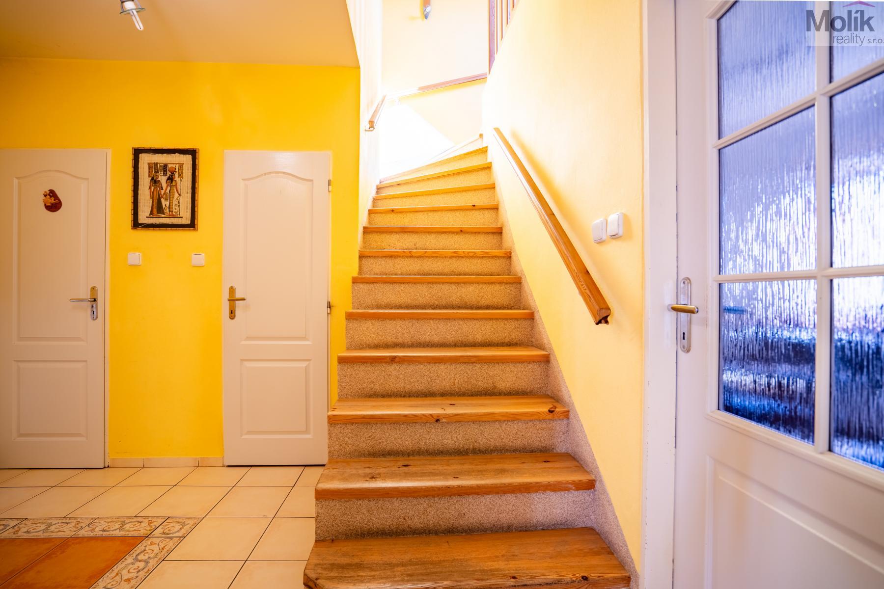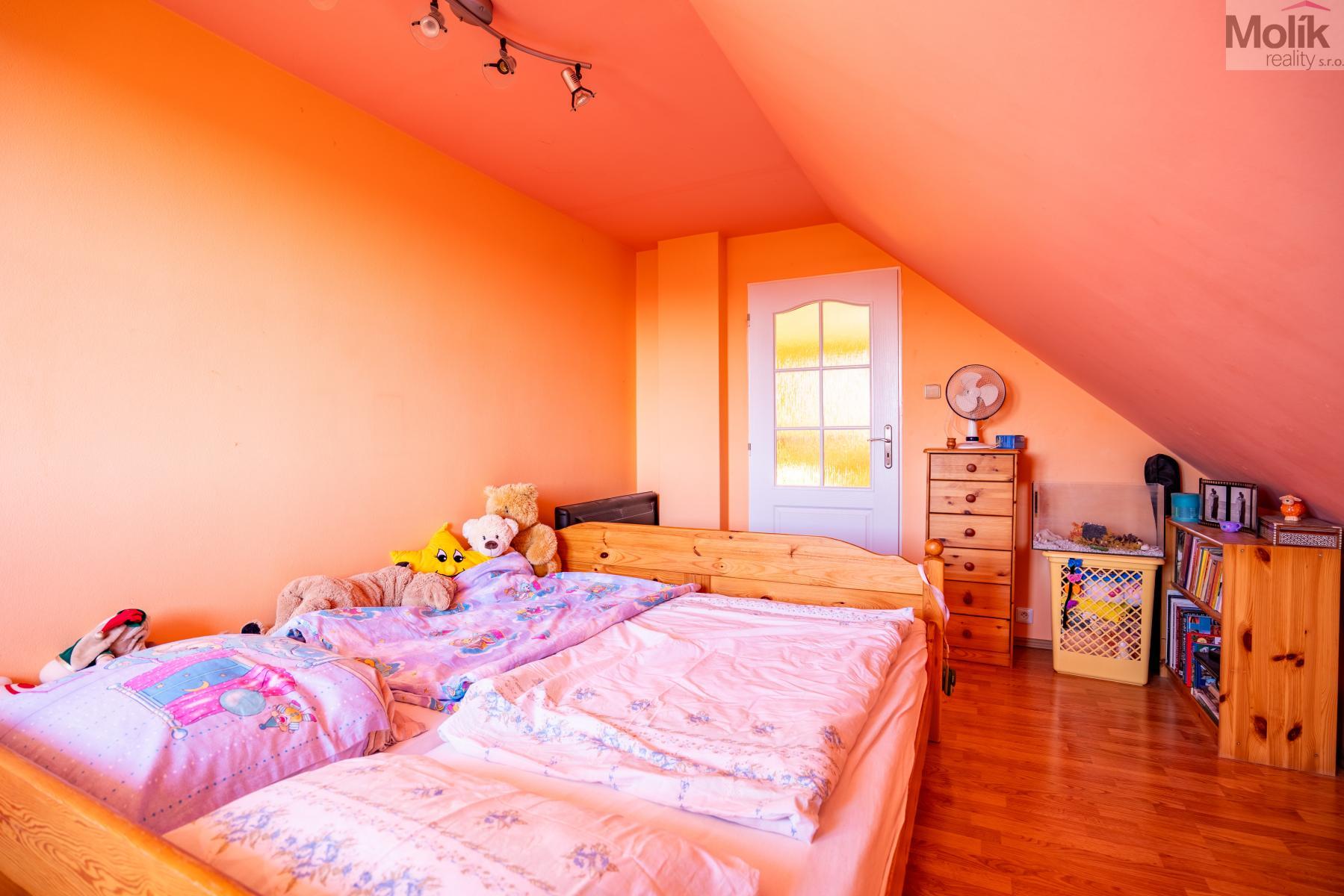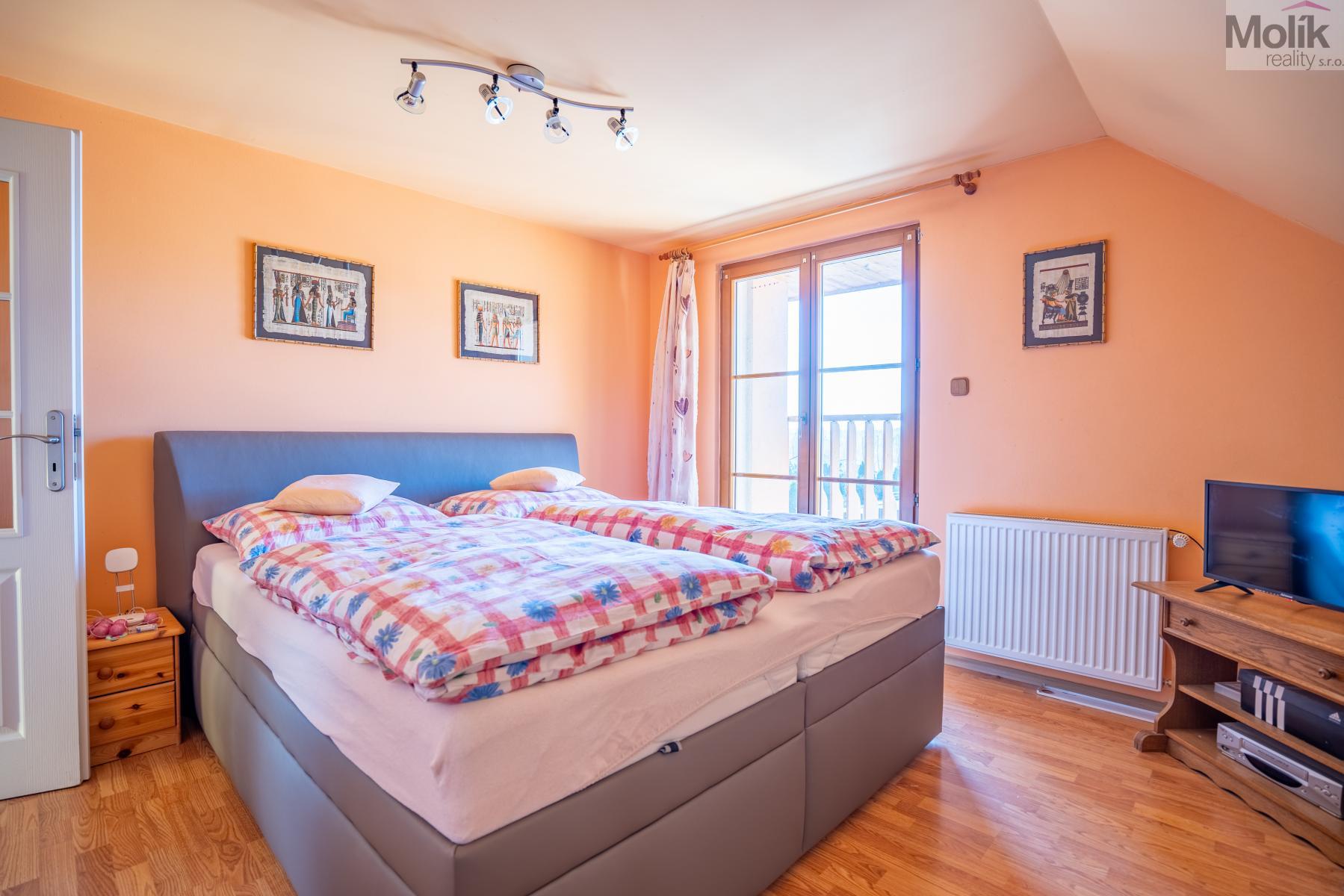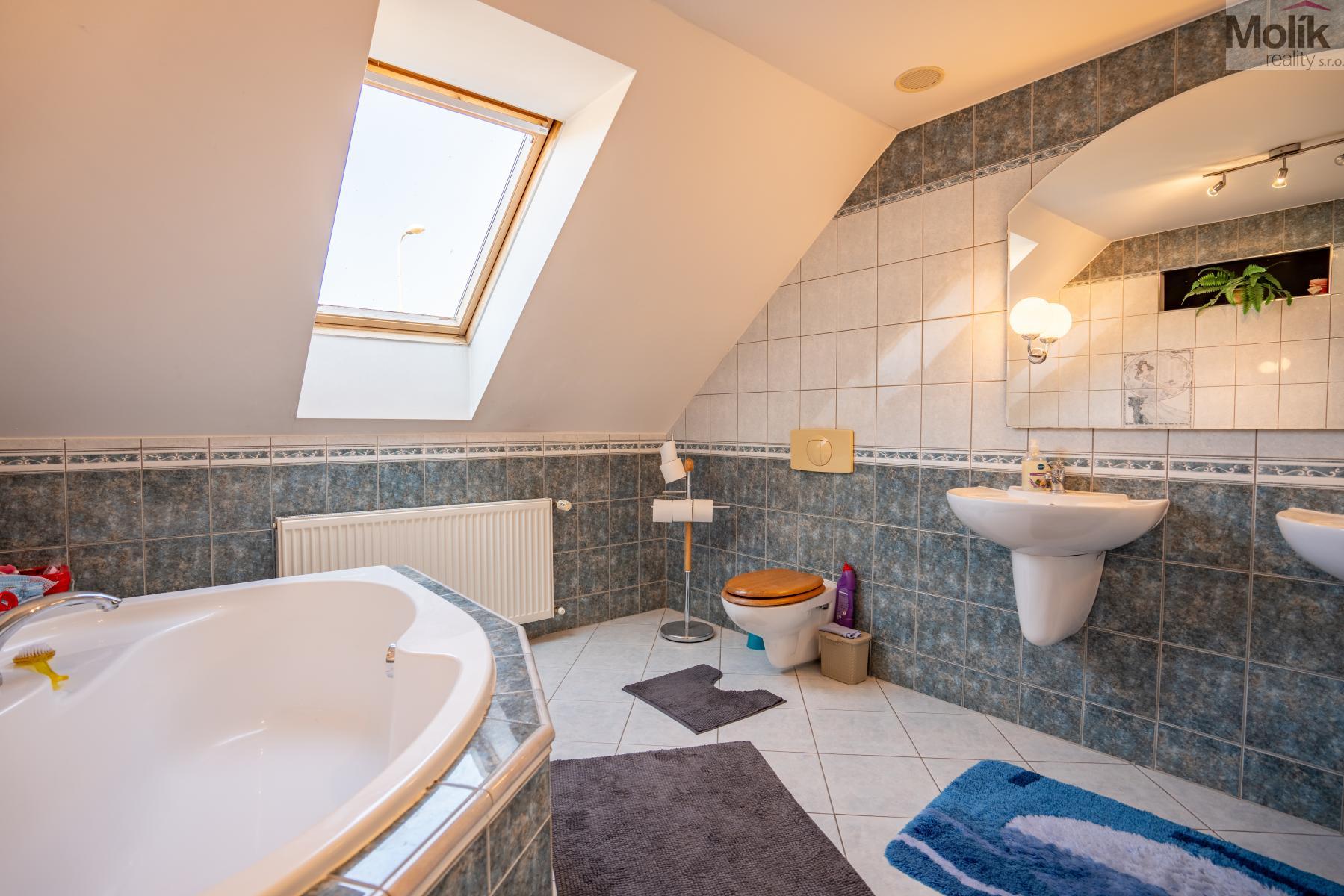 V horní části se nachází tři pokoje (v jednom z nich je balkón), chodba, šatna a koupelna.