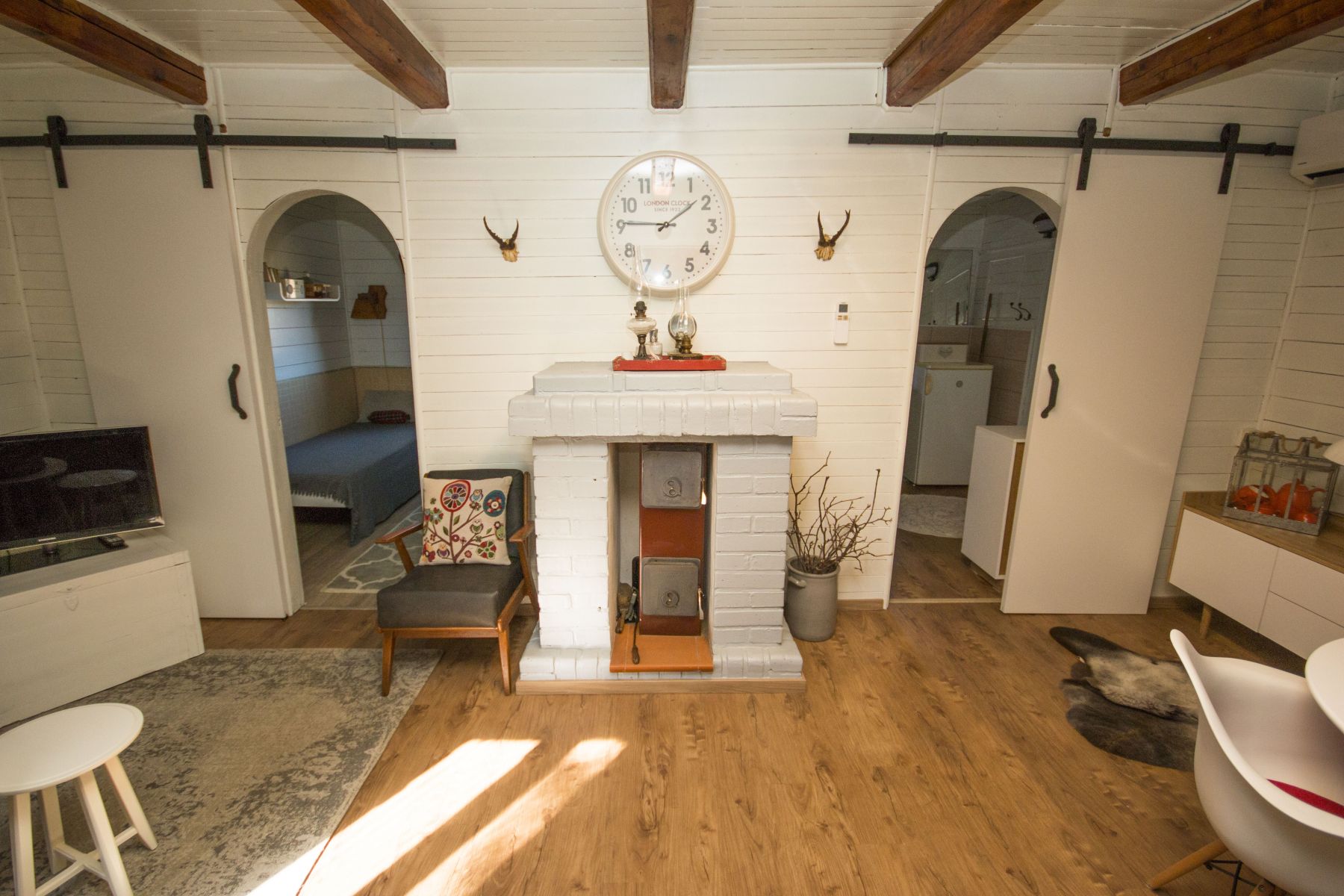 vytápění: kamna na tuhá paliva (Petry) + možnost elektrického přitápění + klimatizace