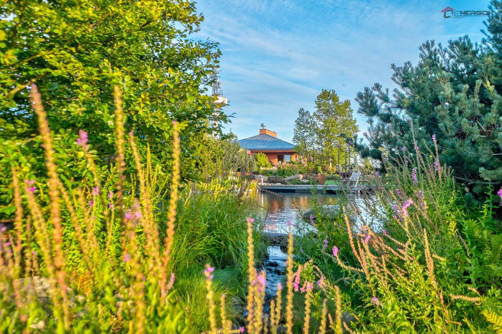 • dům je napojen na obecní vodovod a kanalizaci, nicméně má na pozemku vlastní studnu (na zalévání, doplňování vody do systému jezírek) a obrovskou nádrž na dešťovou vodu