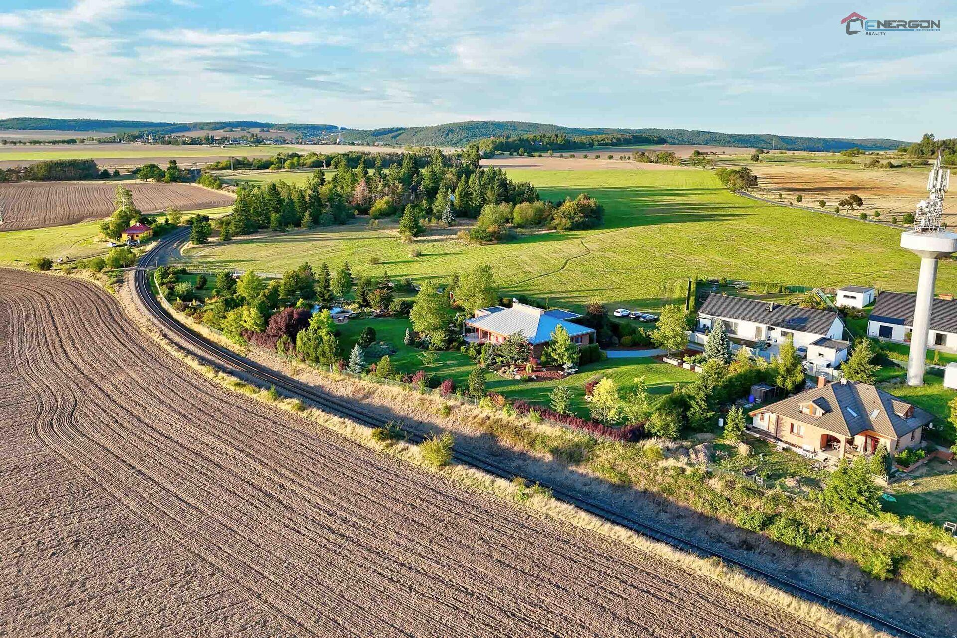 Nabízíme k prodeji velkoryse řešený rodinný dům s jedinečnou atmosférou a úžasným výhledem do krajiny. Jedná se o přízemní bungalov s dispozicí 5+KK a užitnou plochou 267m2. Součástí domu je dvojgaráž a veliká terasa. Dále tu je zahrada plná vzrostlých stromů a keřů, veliké koupací jezírko, nová moderní venkovní sauna. To vše na pozemku celkem 6.957m2.