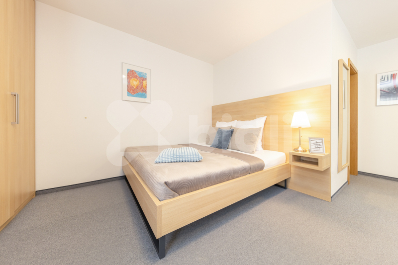 Dokonalému dispozičnímu řešení nemovitosti odpovídá i její nadstandardní vybavení. V přízemí umístněná společenská místnost s úžasným výhledem, kuchyní, krbem, velkoplošnou TV i dataprojektorem s plátnem. Moderní a prostorné pokoje, dva dvoulůžkové, jeden třílůžkový, jeden čtyřlůžkový, každý s vlastním WC a sprchovým koutem. V podkroví je hala s posezením, dva komfortní apartmány 2+kk zařízené pohodlným kvalitním nábytkem, kuchyní a sociálním zázemím. Také diskrétní přístup do půdního prostoru s osvětlením. Ve všech pokojích Smart TV i minibar a v celém objektu Wifi připojení. Celková kapacita ubytování je 20 osob. Nejníže, přesto na úrovni pozemku je stylový historický vinný sklípek, lyžárna kde oceníte vysoušeče obuvi, uzamykatelné skříňky, nebo pro cyklisty možnost úschovy jízdních kol. Přístup do tohoto zázemí je přímo z pozemku, nebo po vnitřním schodišti z chodby v přízemí. Vedle sklad a technická místnost, kde moderní kombinovaný kotel na tuhá paliva s automatickým dávkováním zajišťuje komfort ústředním vytápěním. Pro letní období, nebo jako záložní zdroj slouží plynový kotel na PB.