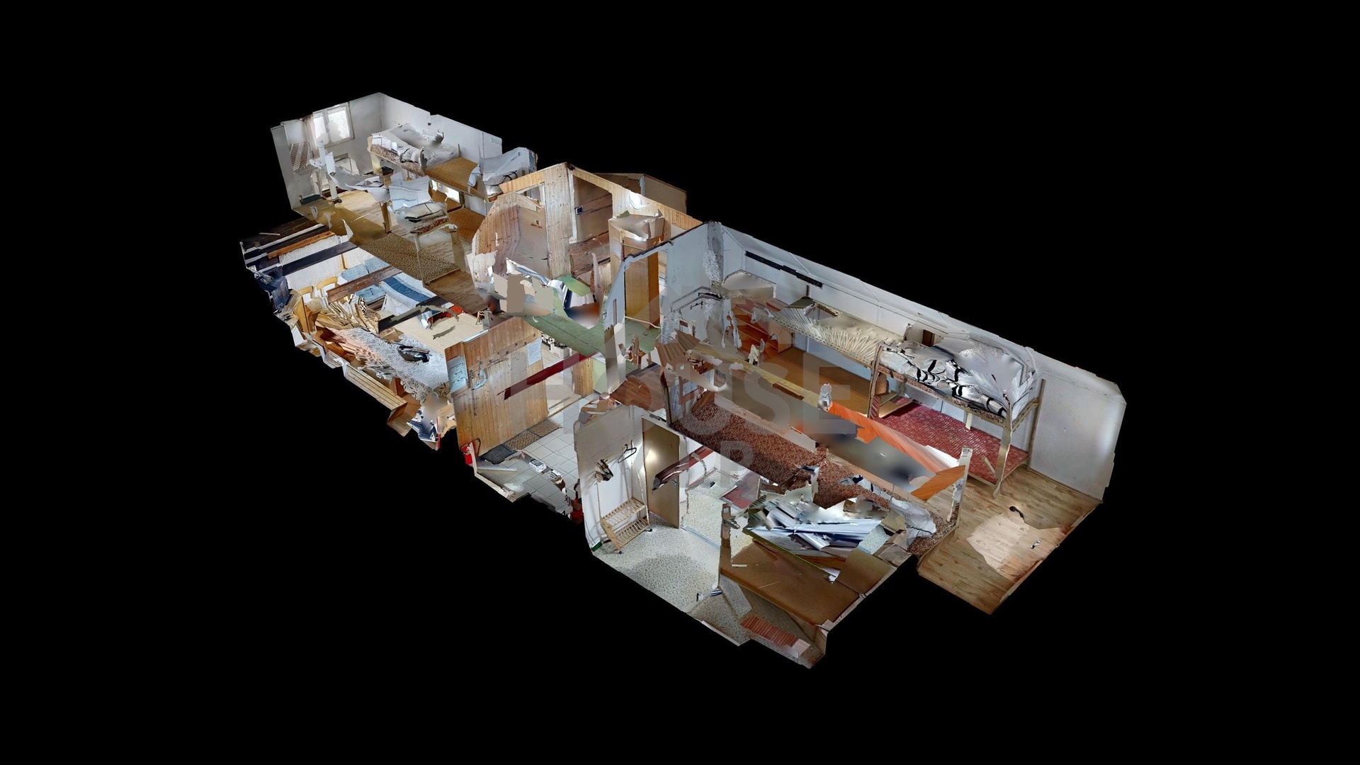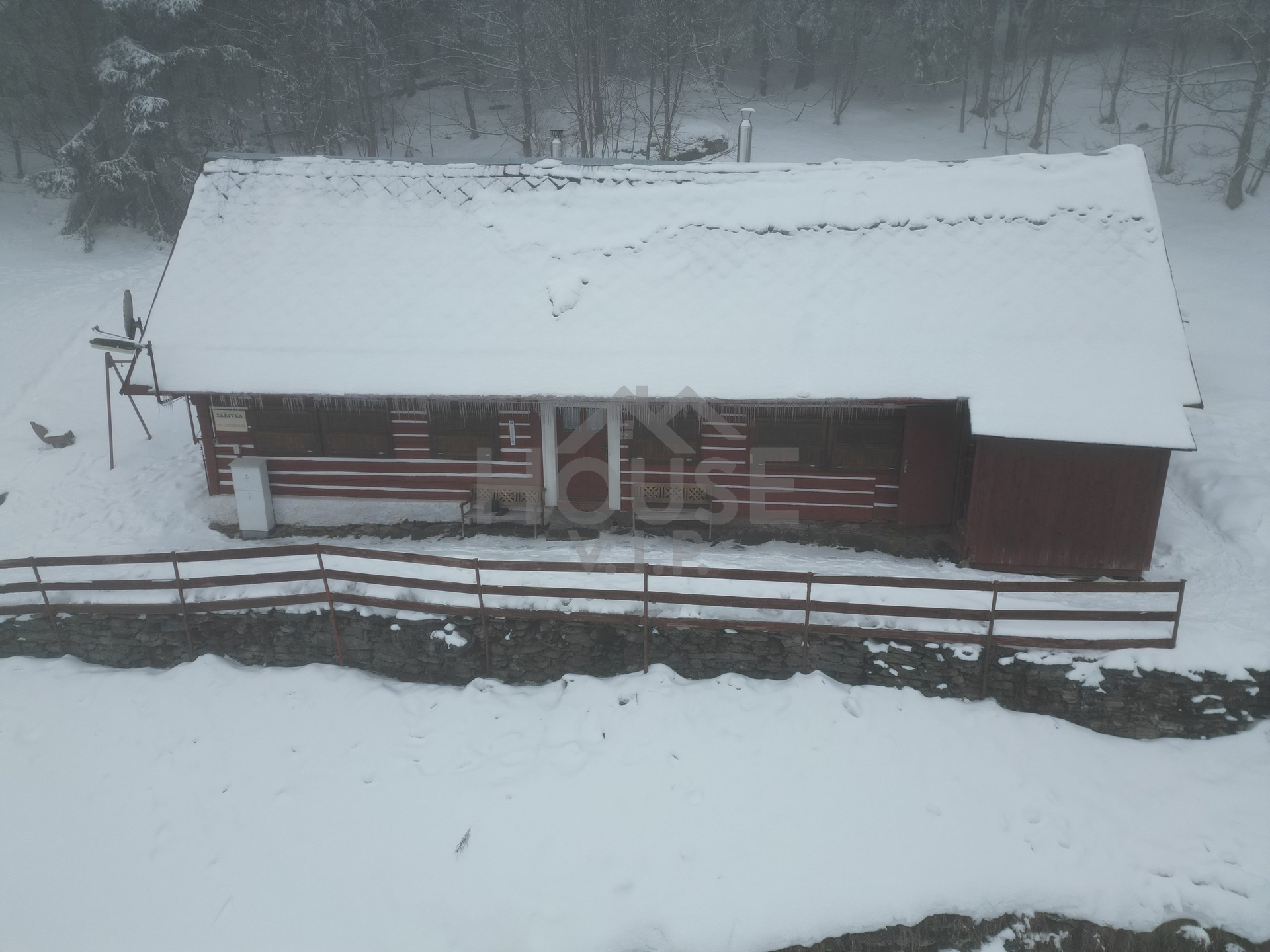 Stavba domu roubeného domu je kolaudována jako stavba ubytovacího zařízení a je určen ke kompletní rekonstrukci. V současné době je dům využíván jako podniková chata pro ubytování až 24 osob. Celková užitná plocha je cca 110 m². Dům je nepodsklepený a má jedno NP a obytné podkroví. V přízemí domu se nachází chodba, kde se nachází malá kuchyňská linka (17,26 m²), společenská místnost (24,82 m²), ložnice (20,34 m²), spíž (5,89 m²) a dřevník (11,02 m²). V obytném podkroví se nachází dvě ložnice (18,72 m² a 15,51 m²) a chodba (7,36 m²).