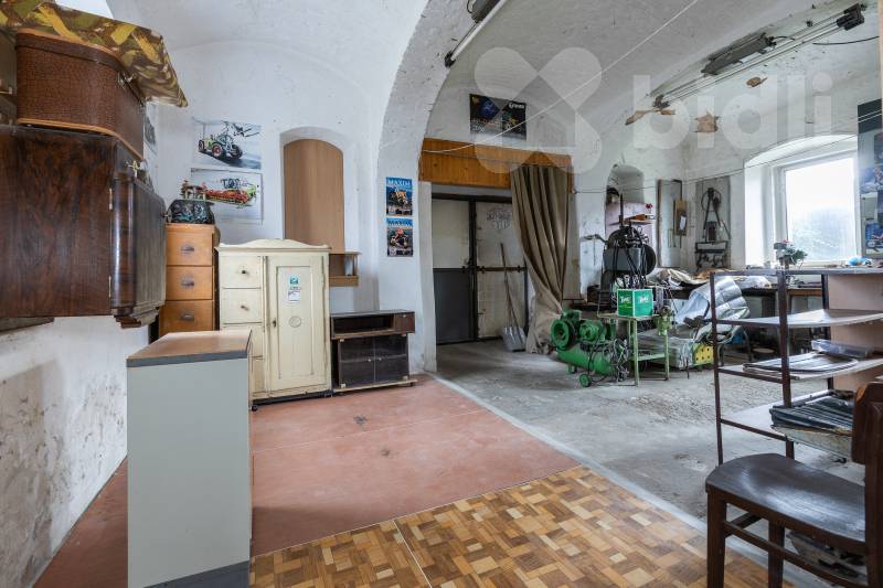 Rodinný dům s plochou 275 m² je chytře rozdělen na tři patra plná potenciálu. V přízemí najdete prostory bývalé kovárny o velikosti 85 m², které mají vstup velkými dveřmi, takže se ideálně hodí pro dílnu, sklad, garáže nebo třeba ateliér - zkrátka pro jakékoliv podnikání, které se stane vaší skvělou konkurenční výhodou. Stropy jsou vysoké více než 3 m.