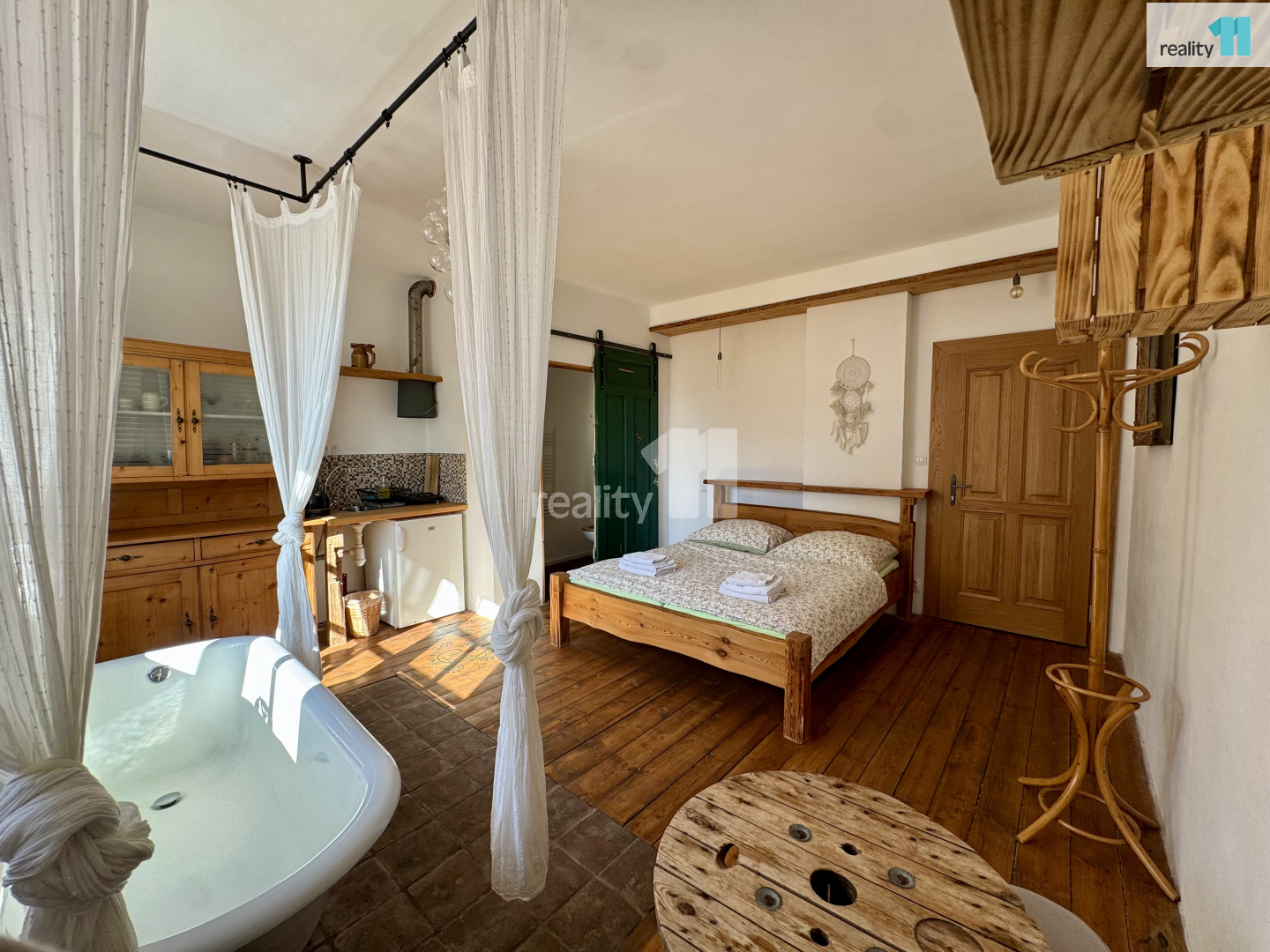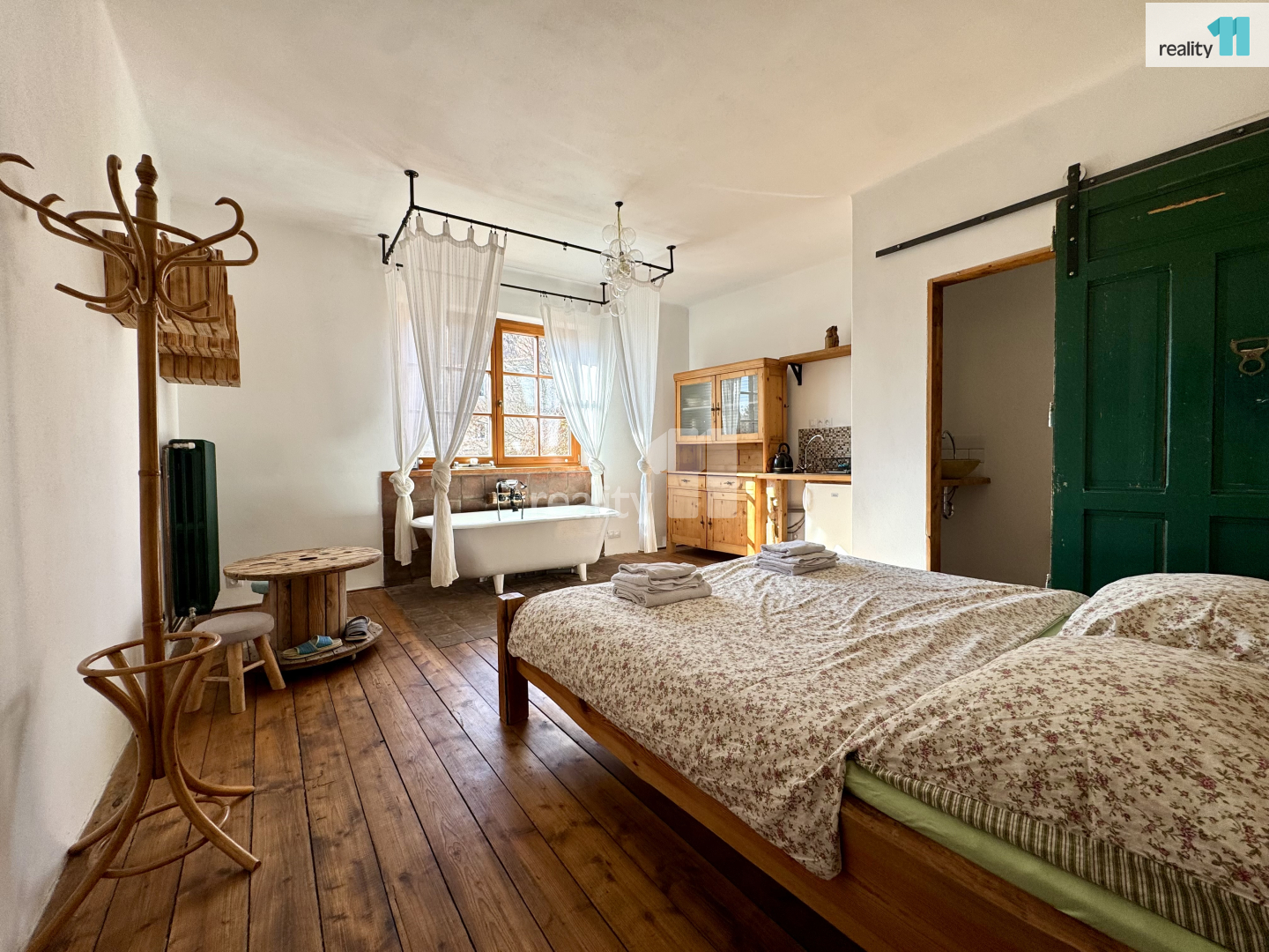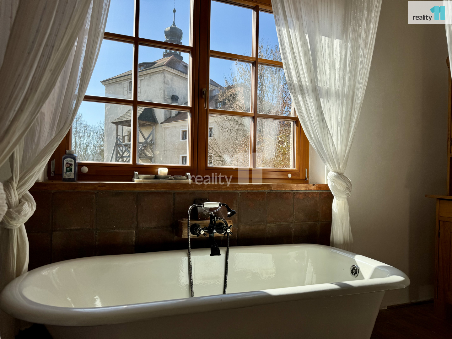 První jednotka je romanticky laděná, s vanou a výhledem na středověkou tvrz Malešov.