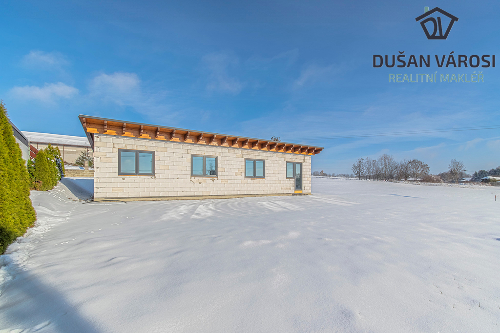 Hrubá stavba jednopodlažního rodinného domu 4+KK s možností dokončení na klíč. Stavba se nachází na pozemku o rozloze 899m2 s přístupem po obecních cestách. V tuto chvíli je cesta připravená - zpevněná. Po dokončení stavby bude položen asfalt (to zajistí obec). Na hranici pozemku je sloup vedení nízkého napětí. Voda bude zajištěna z vlastní studny. Odvod splaškových vod je dotovaný obcí pří zřízení čističky odpadních vod. Plyn není v dosahu. Stavební povolení bylo vydáno v listopadu 2018, není tedy nutná fotovoltaická elektrárna, tepelné čerpadlo, rekuperace ani retenční nádrž na dešťovou vodu. (Celkově tedy nižší náklady na dostavbu domu.) Dům je orientovaný jižně.