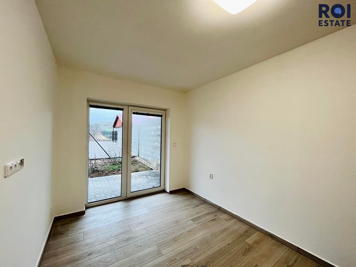 Byt se nachází v přízemí a po vstupu se ocitnete v chodbě, která poskytuje spoustu úložného prostoru. V prvé řadě je zde technická místnost pod schody, která Vám může sloužit jako uklízecí koutek nebo jako odkladný prostor, kterého je zde mnoho. Je zde k dispozici i samostatná komora, která může sloužit jako spíž. Prostorná koupelna s odděleným WC je také výhodou, ale jakmile se dostanete do obytného prostoru tak budete zírat. Původně byla nemovitost řešena jako 3+kk, ale vzhledem k nevybudování okna se jedná o byt 2+kk se šatnou o velikostí pokoje, takže místa je tu opravdu dostatek! V obývacím prostoru se nachází také kuchyňský kout, který je Vám plně k dispozici se spotřebiči jako je myčka, elektrická trouba či lednice. Zbytek nemovitosti si můžete zařídit dle Vaší chuti a představ, jelikož se zbytek bytu nabízí jako nevybavený. Potěší Vás také předzahrádka, kde si můžete vypěstovat vlastní zeleninu či posedět s přáteli.