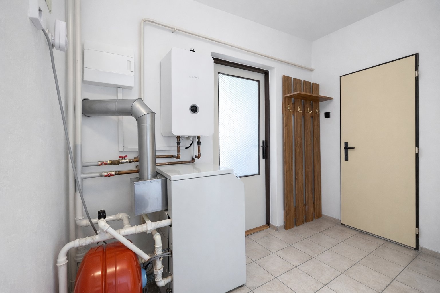 Dům je napojen na elektřinu, vodu, plyn i kanalizaci. Ohřev vody a vytápění je řešeno elektrickým i plynovým kotlem. V obývacím pokoji se nachází komín, díky čemuž je zde možnost vybudování kamen dle vlastních představ.