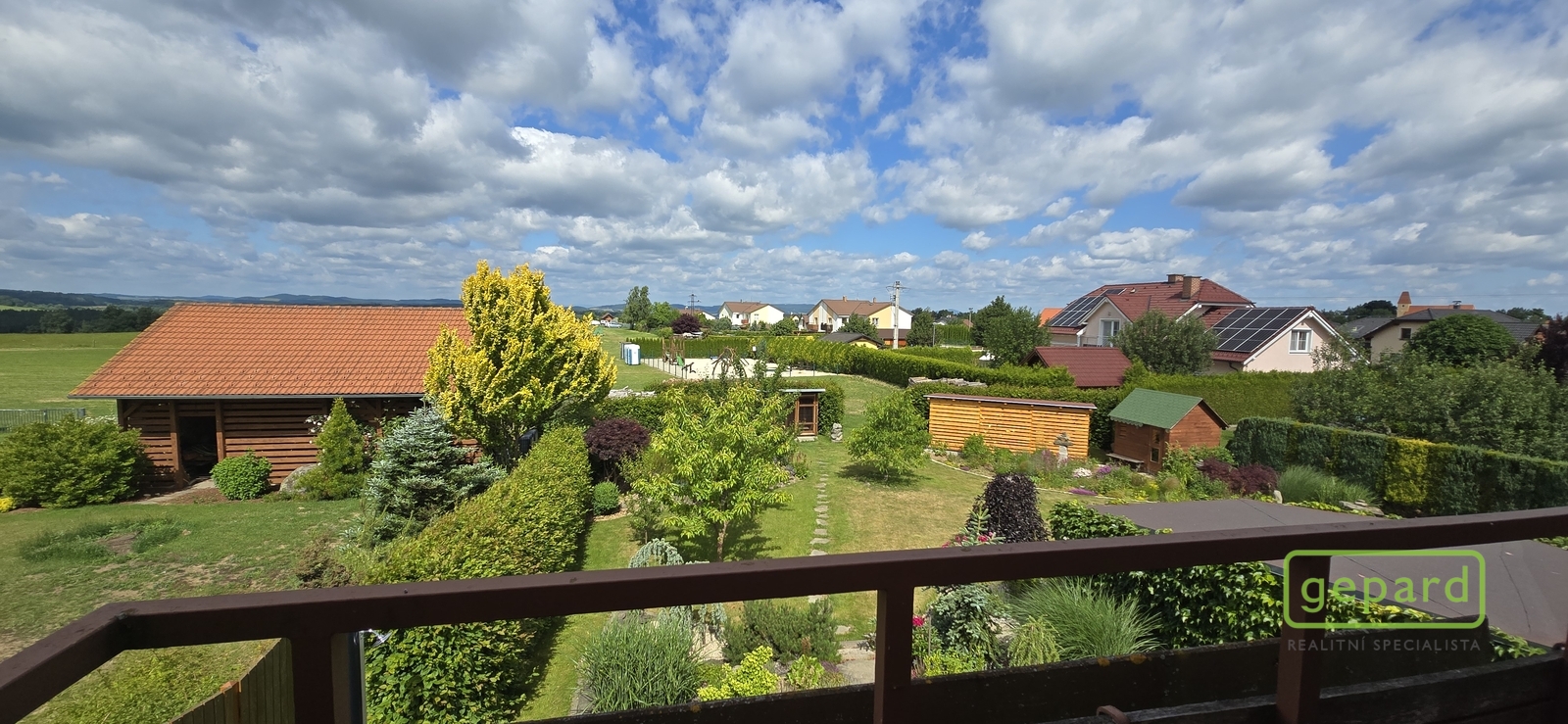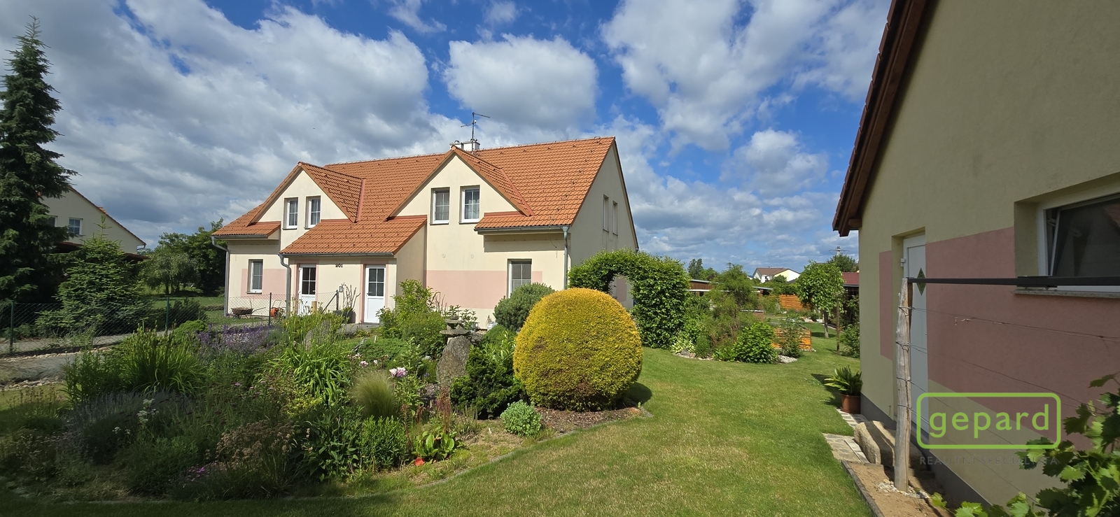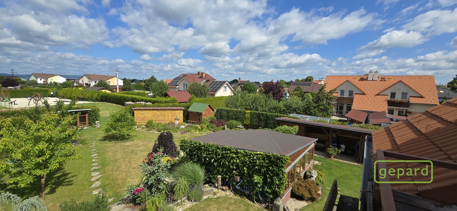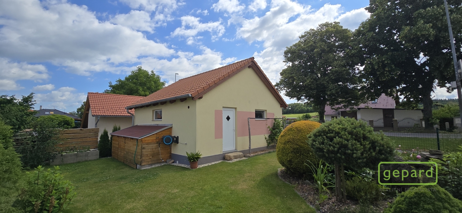 Na zahradě je k dispozici pergola, přístřešek, stavba na nářadí, skleník, okrasné dřeviny, květiny a je celý oplocený. Dále se v rohu pozemku u hlavní cesty nachází velká zděná dvojgaráž o zastavěné ploše 49m2, do které se dá vejít dveřmi přímo ze zahrady a vjíždí se do ní z obecní komunikace skrze rolovací vrata na dálkové ovládání.