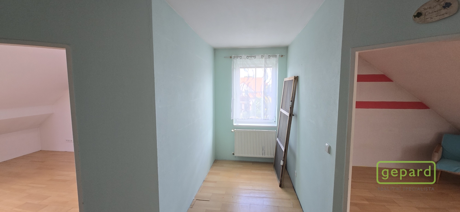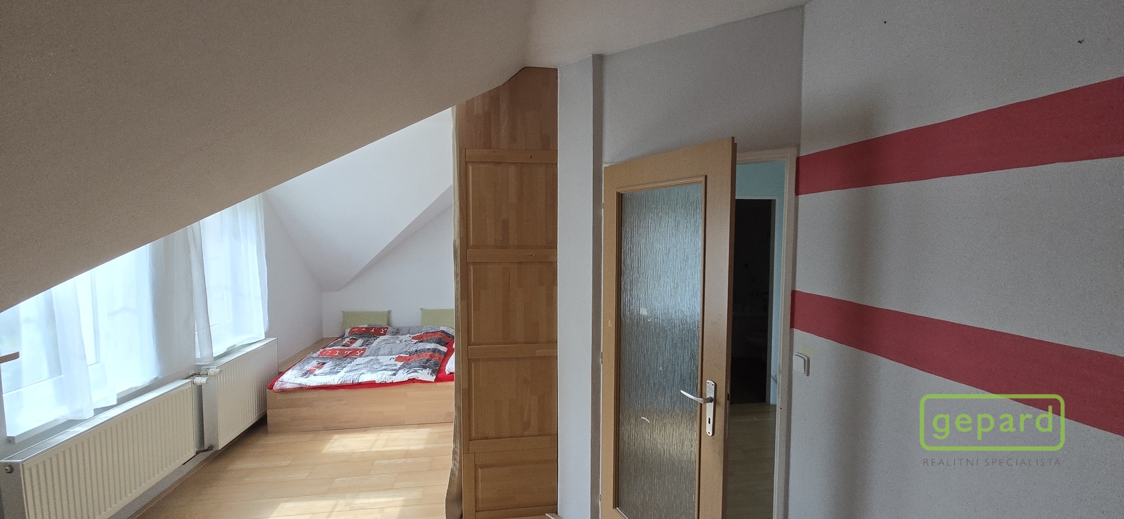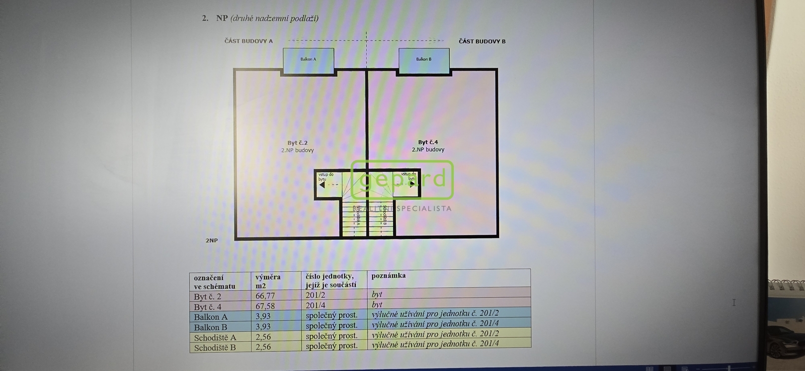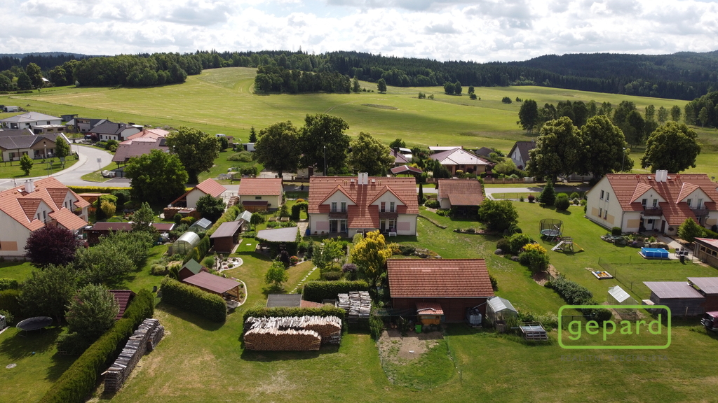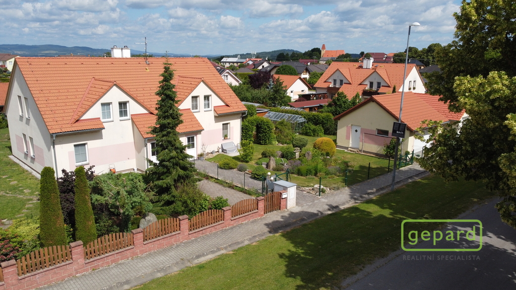 Jedná se o samostatnou bytovou jednotku v patře poloviny rodinného domu se společným pozemkem a garáží, kdy v rámci vlastnictví jednotky má vlastník 1/2 podílu na pozemku - zahradě o celkové výměře 1108m2 a garáži o ploše 49m2.