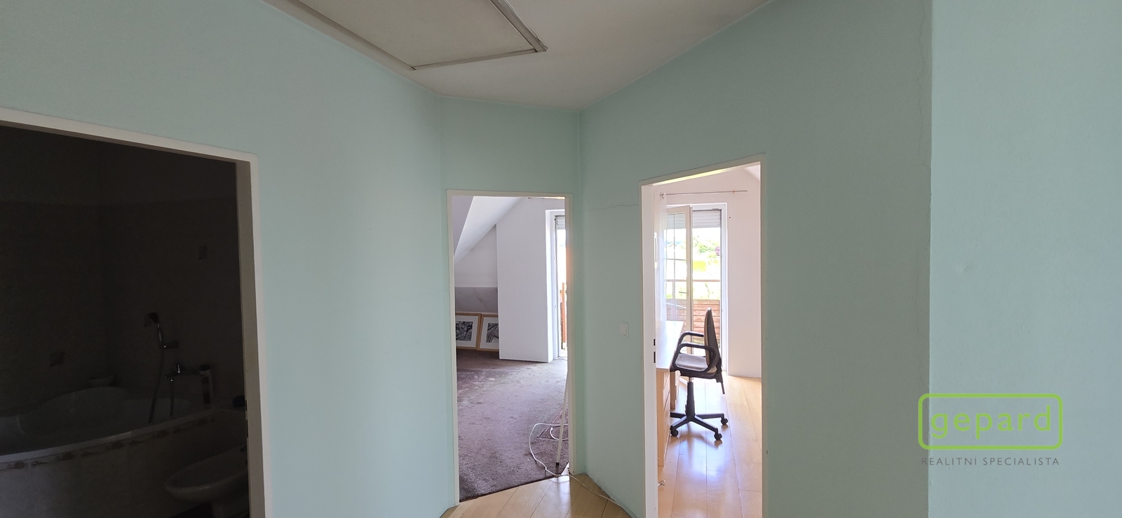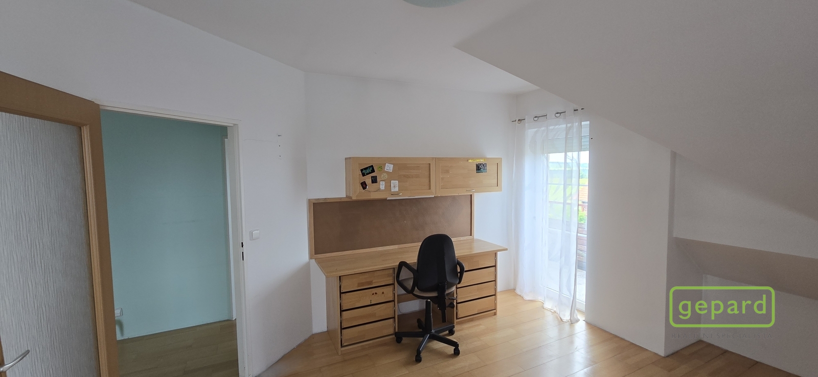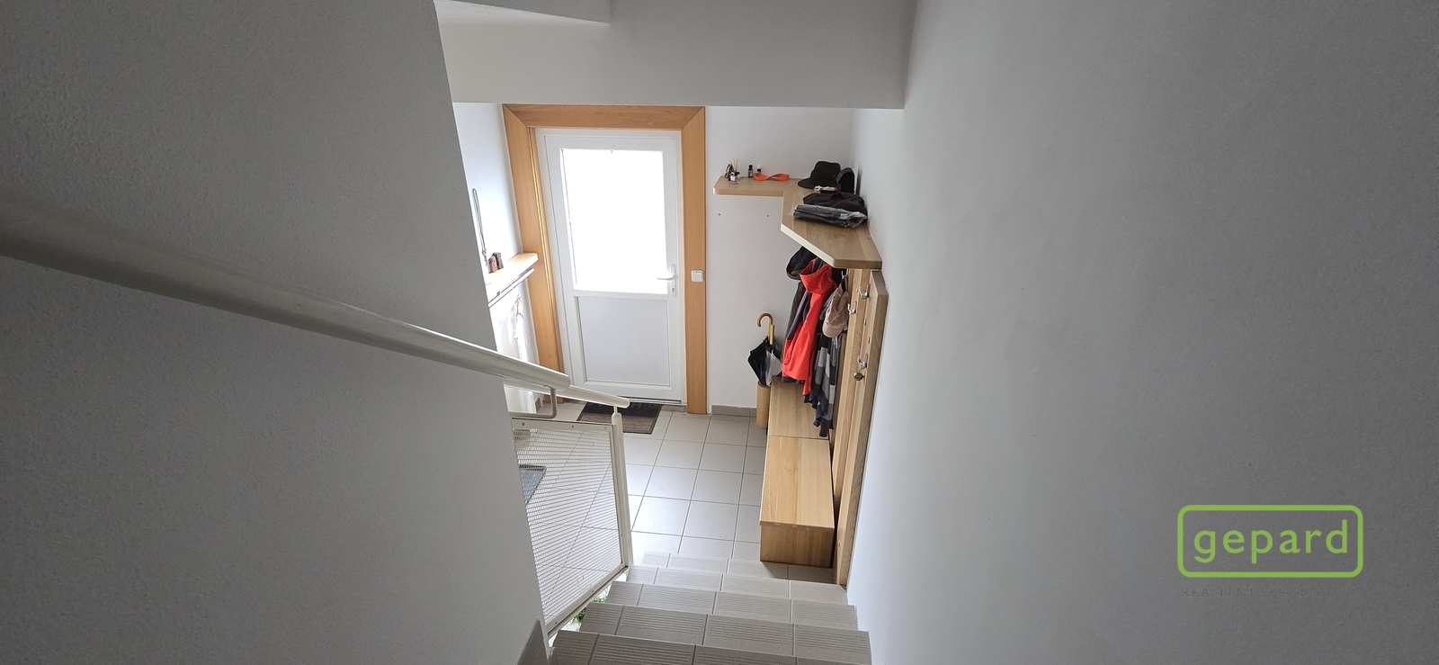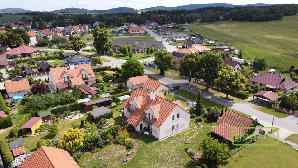 Jedná se o samostatnou bytovou jednotku v patře poloviny rodinného domu se společným pozemkem a garáží, kdy v rámci vlastnictví jednotky má vlastník 1/2 podílu na pozemku - zahradě o celkové výměře 1108m2 a garáži o ploše 49m2.