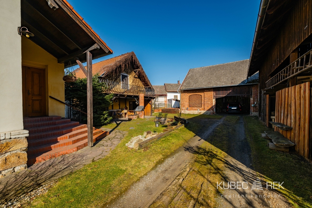 Užitná plocha domu činí přibližně 240 m². Nemovitost stojí na pozemku o celkové výměře 1.143 m², který nabízí dostatek prostoru, soukromí i praktického zázemí. K dispozici je prostorná garáž s dílnou a další parkování na pozemku až pro čtyři vozy. Součástí jsou také dvě stodoly – jedna zděná a druhá dřevěná.