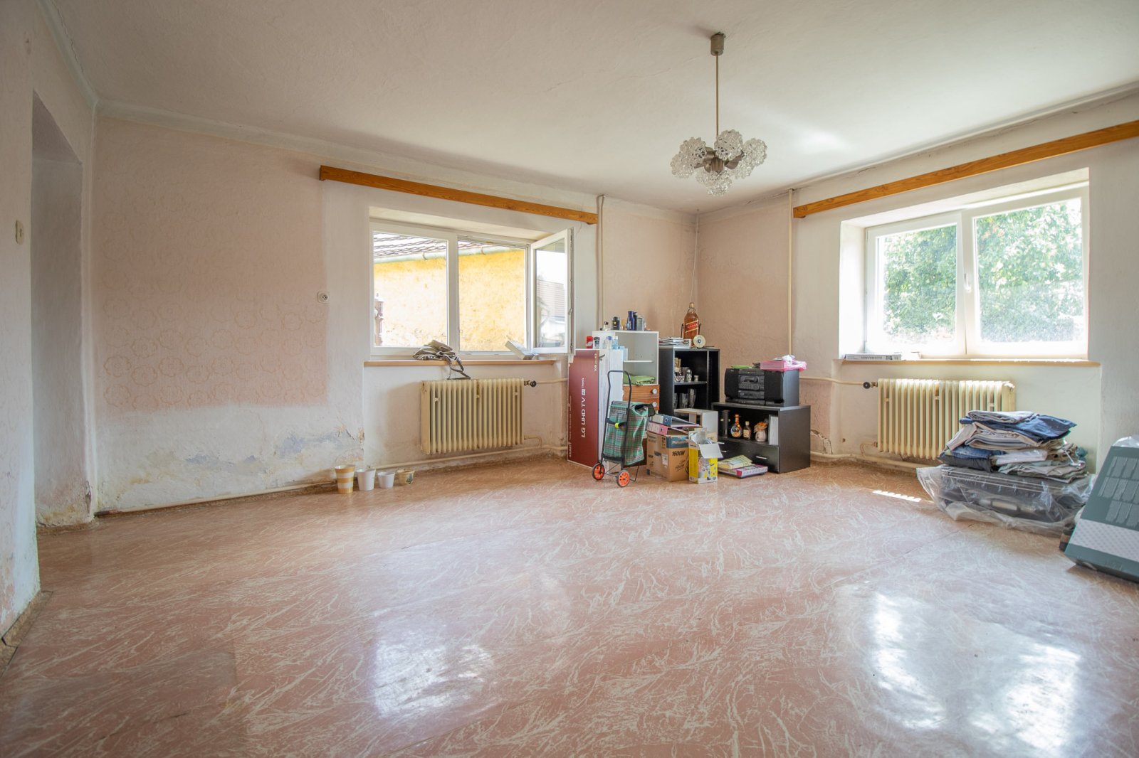 Hlavní obytná část: Prostorný dům s výraznou žlutou fasádou, orientovaný na jihovýchod, což zajišťuje dostatek slunečního svitu. Dům nabízí vstupní verandu o velikosti 6 m², kuchyni o velikosti 14 m² a tři prostorné pokoje o rozměrech 25 m², 22 m² a 20 m², které poskytují dostatek místa pro rodinné bydlení. Dále je zde koupelna 6 m2 s vanou a samostatné WC. Dům disponuje také sklepem o velikosti 2,5 m² se vstupem přímo z kuchyně, ideálním pro uskladnění potravin či zeleniny. Důležitou výhodou jsou již vyměněná nová plastová okna, která zajišťují lepší izolaci a snižují náklady na budoucí rekonstrukci. Dům je jinak určen k celkové rekonstrukci interiéru a rozvodů, což vám umožní vytvořit si domov přesně podle vašich snů a potřeb.