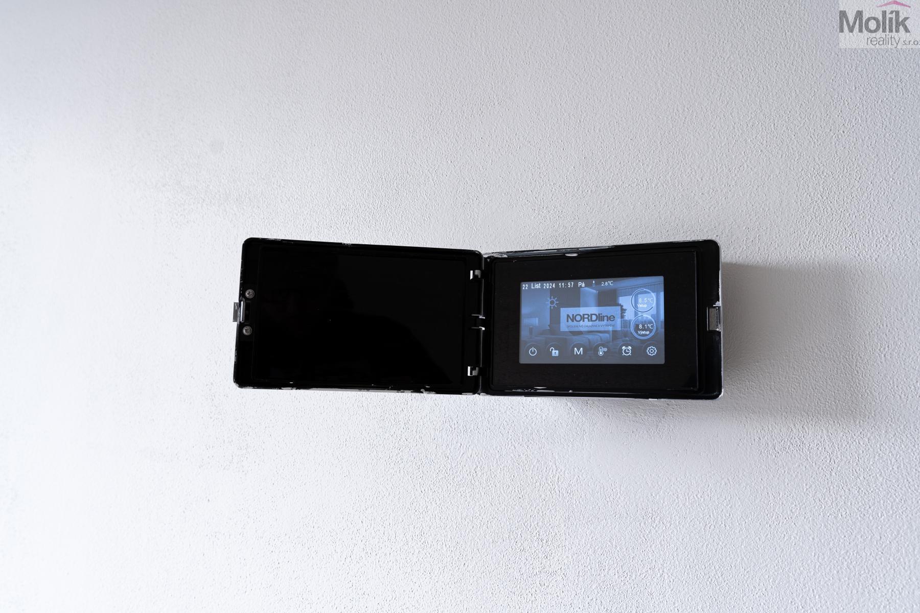 Nemovitost je vytápěna tepelným čerpadlem (spodní část domu podlahové vytápění, horní radiátory).