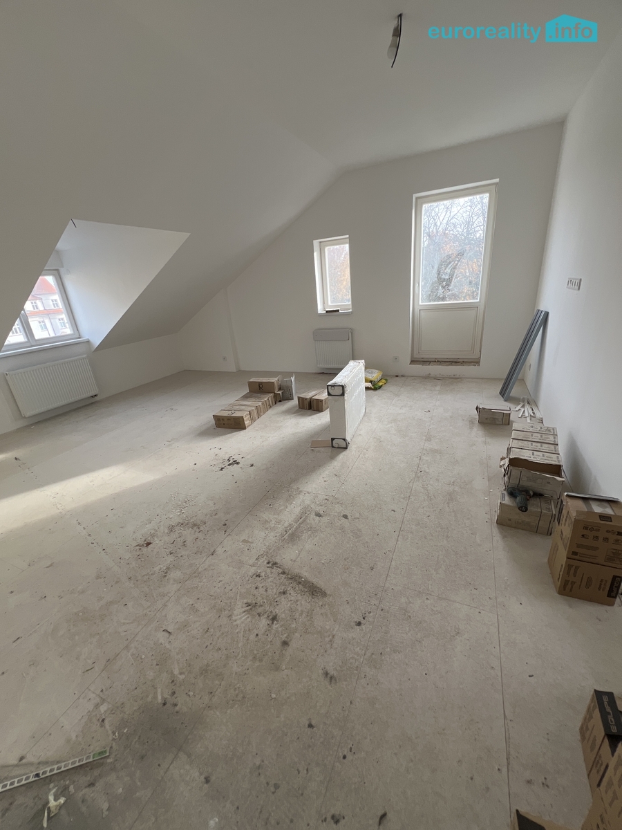 Nabízíme k prodeji podkrovní byt o dispozici 2+kk v developerském projektu "Villa Emma", situovaný v nově zrekonstruovaném cihlovém domě na Hlavní třídě v Mariánských Lázních. Tento byt se nachází ve třetím patře třípodlažního domu a nabízí celkovou plochu 52 m², což zajišťuje dostatek prostoru pro pohodlné bydlení.