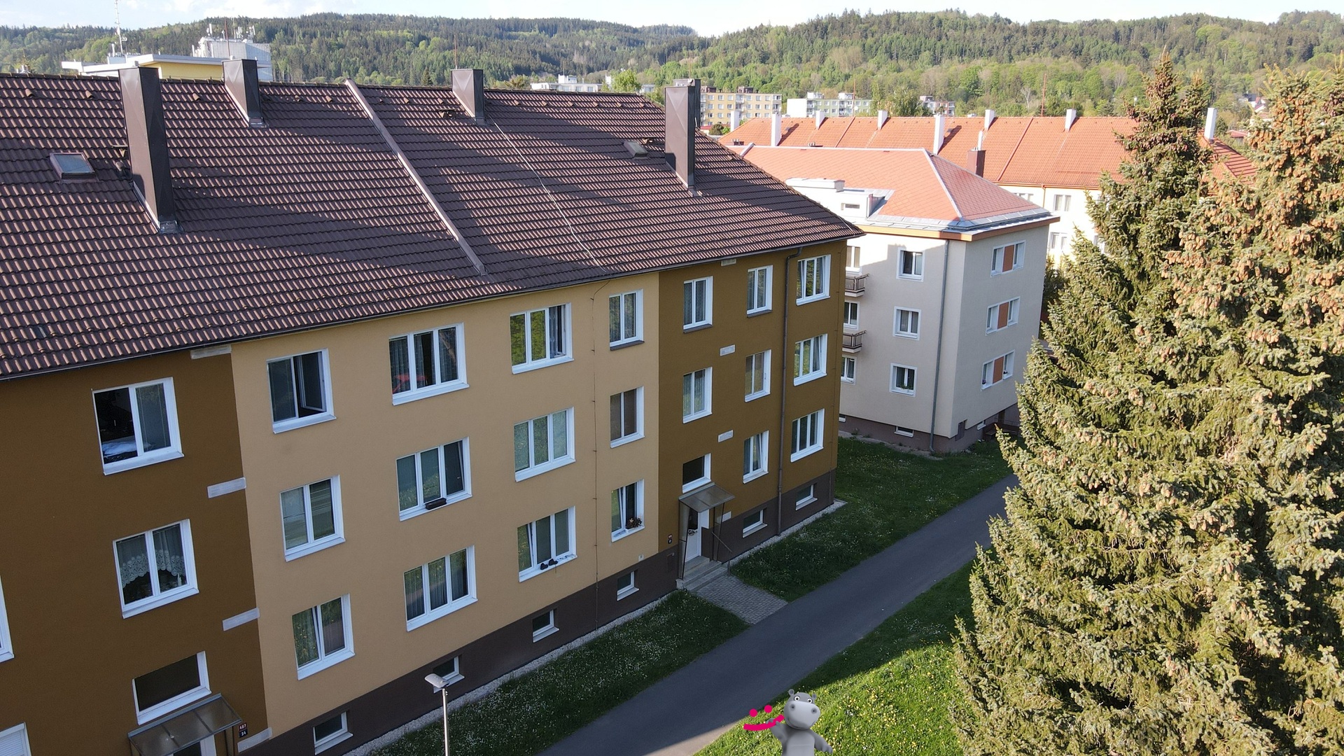 Bytový dům má novou zateplenou fasádu, novou střechu a vstupní vestibul. Úklid domu zajišťuje firma.
