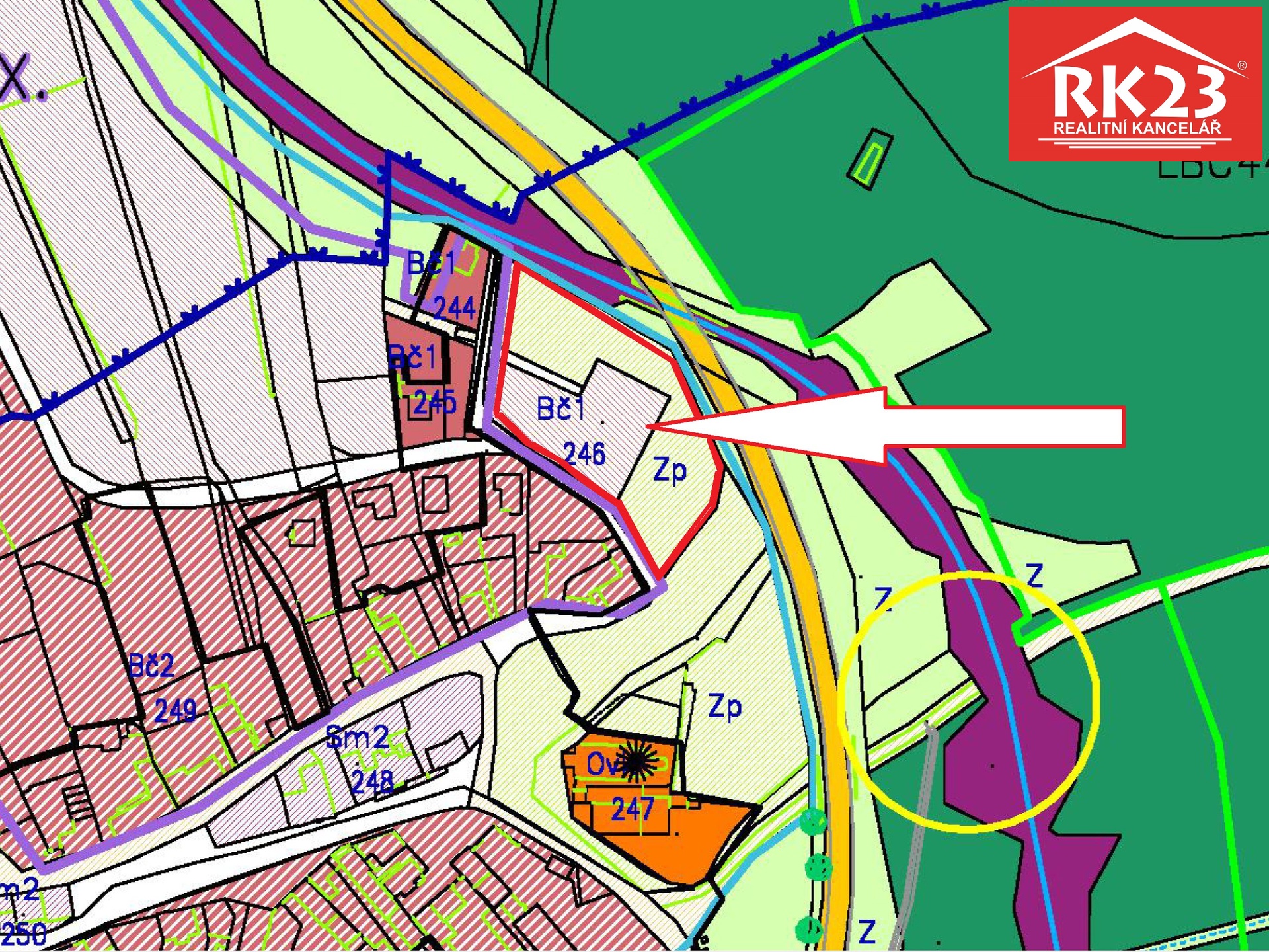 Funkce dle územní plánu: plocha pro rodinné bydlení, přípustné je i menší ubytovací zařízení (pension / tiny houses apod.).