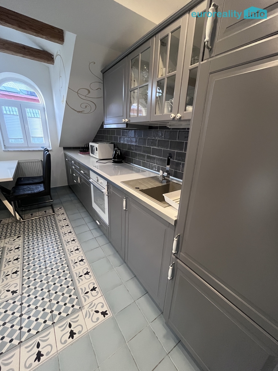Nabízíme k pronájmu kompletně zařízený podkrovní byt 2+kk s balkonem, nacházející se v centru města v klidné ulici. Z okna bytu je krásný výhled do městského parku, a nebo je možné využít klidné posezení na balkoně s výhledem do vnitrobloku.