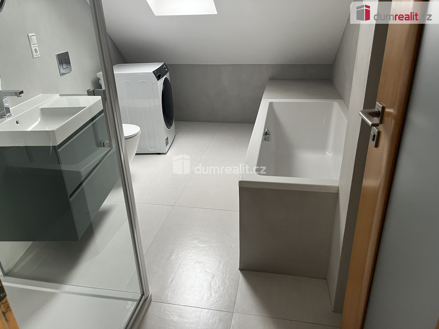 V koupelnách je podlahové vytápění, na podlahách jsou dubové parkety, v plastových oknech jsou síťky proti hmyzu. Půdní prostor, kde byla jednotka vystavěna je zateplený, rekonstrukce byla provedena velmi kvalitně a nabízí vysoký komfort bydlení pro náročné. Budova je ve velmi dobrém stavu. K bytové jednotce náleží dále sklep, spoluvlastnický podíl a kůlna na zahradě, majitel má své vyhrazené parkovací místo na pozemku vedle domu za příjezdovou bránou na dálkové ovládání.