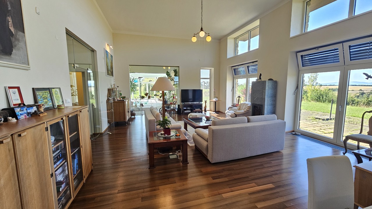 Nabízíme k prodeji nemovitost o celkové rozloze 9 930 m2, Martiněves u Libochovic. Vila s vnitřním bazénem a dechberoucími výhledy na České středohoří a hrad Hazmburk.Prostorná nadstandardní vila v srdci malebné krajiny Litoměřicka, která spojuje soukromí, komfort a výjimečnou atmosféru. Otevřené horizonty – každé ráno Vás probudí panorama Českého středohoří. Dům je ideální pro náročnou rodinu, která hledá reprezentativní zázemí i místo pro odpočinek a zábavu s přáteli. Mezi klíčové přednosti této nemovitosti patří :Velkorysá užitná plocha 938 m² a promyšlené dispoziční řešení.Prostorný vnitřní bazén s pohodovým venkovním posezením.Panoramatické výhledy do krajiny – na České středohoří a hrad Hazmburk.Maximální soukromí a klid, vzrostlá zeleň.Garáž pro dva osobní automobily + venkovní stáníVytápění domu zajišťuje moderní nové tepelné čerpadlo, klimatizacePlocha pozemku – krásná, užitná zahrada s keři, ovocným sadem a vzrostlými stromy.Dispozice:1. NP (přízemí) – hlavní společenská zóna: velký obývací pokoj s francouzskými dveřmi a okny do zahrady, krb, vstup k bazénu, jídelna a plně vybavená kuchyně s ostrůvkem a spíží; dále pracovna s toaletou, šatní komora, ložnice, druhá pracovna, koupelna se sprchovým koutem a vanou, vstup do patra i vstup do sklepních prostor a ke garáži.2. NP (patro) – prostorný pokoj s nádherným výhledem, toaleta a podkrovní místnost ve druhém křídle domu, kterou si budoucí majitel může upravit dle vlastní představy.Martiněves nabízí pohodové venkovské bydlení s výbornou dostupností do Roudnice n. L., Litoměřic, Prahy a Ústí nad Labem. Na vycházky i kolo láká romantická krajina Českého středohoří; dominantou v dohledu je hrad Hazmburk, jeden z nejikoničtějších vrchů v regionu. Pro zájemce o výlety na Hazmburk patří mezi nejpopulárnější v okolí Libochovic.Dům je ideální pro rodinu, která chce spojit prestiž a komfort s každodenním klidem přírody. Pro ty, kdo ocení reprezentativní bydlení s možností pracovat z domova, mít maximální soukromí, pořádat zahradní party u bazénu a každý den si užívat výhledy, které se neokoukají.Nemovitost se nachází v dojezdové vzdálenosti cca 30 min od Prahy po D8, směrem na Slaný také cca 30 minu, letiště Ruzyně cca 40 minut.Cena prohlídky pro vážné zájemce 2 500,-Kč.Ráda vás provedu osobně; pro domluvu prohlídky volejte nebo pište.