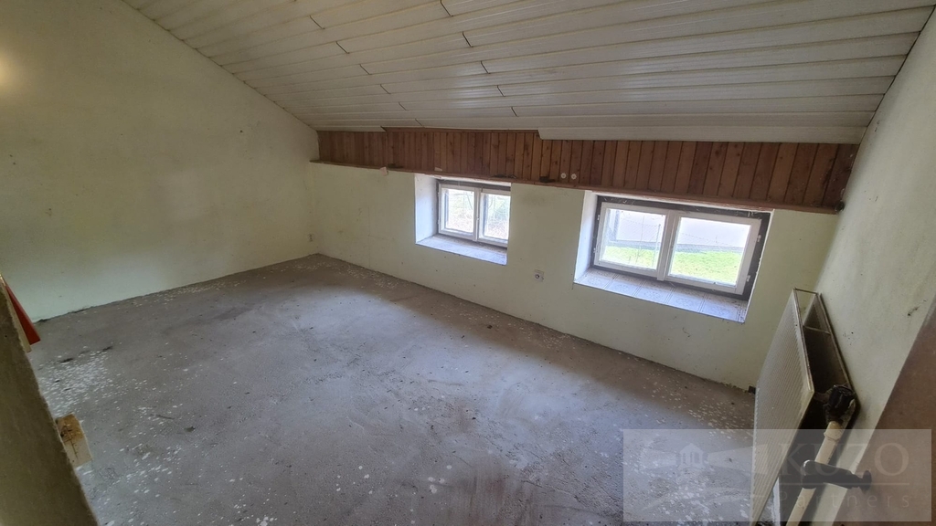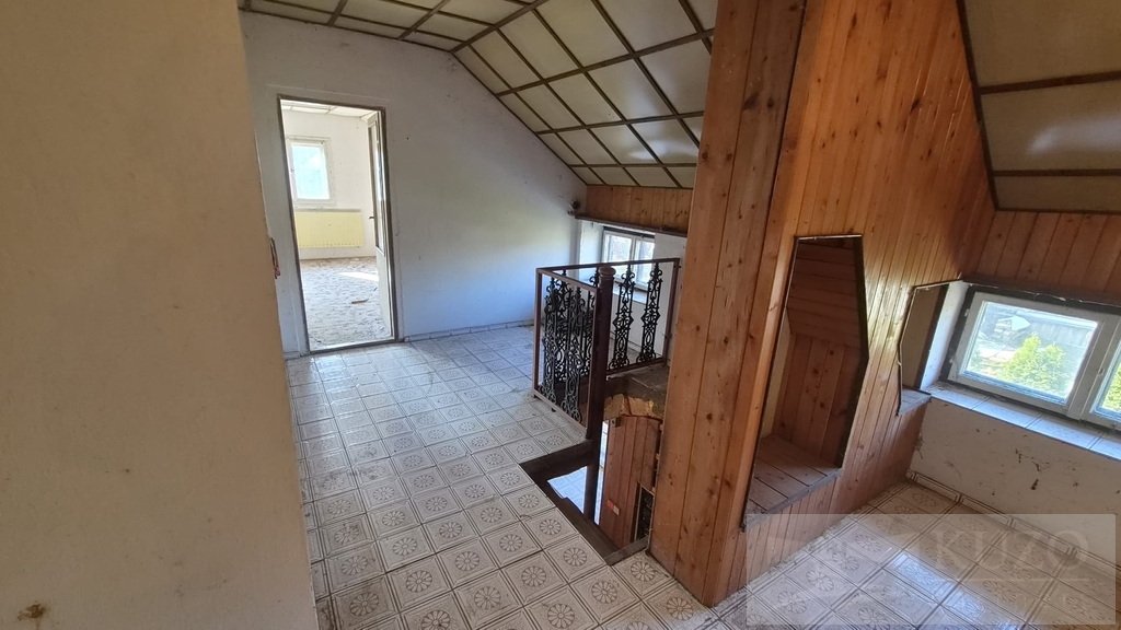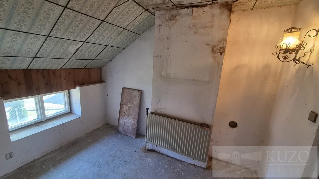 V exkluzivním zastoupení majitele nabízíme k prodeji nepodsklepený samostatně stojící rodinný dům bez č. p. / č. ev., s jedním nadzemním podlažím a obytným podkrovím, s jednou bytovou jednotkou o dispozici 5+1, situovaný v zástavbě rodinných domů v obci Meclov - část Němčice, s přístupem ze zpevněné komunikace p. č. 919 a po částečně zpevněné komunikaci p. č. 876/1. Pozemek je rovinný, rodinný dům je napojen na elektro přípojku a vlastní studnu, odkanalizování je provedeno do jímky. Dopravní dostupnost je zajišťována autobusovými spoji, Němčice leží ve vzdálenosti cca 2,5 km od silnice I. třídy č. I/26 ve směru na hraniční přechod Folmava - Plzeň. Základní obchodní síť a síť služeb (základní a střední školy, městský, stavební a finanční úřad, banky, čerpací stanice PHM, market, sportovní areál, zdravotní středisko a nabídky pracovních příležitostí) jsou v obci s rozšířenou působností - Horšovský Týn ve vzdálenosti cca 4,5 km, nejbližší nemocnice, kompletní obchodní síť služeb jsou v bývalém okresním městě Domažlice ve vzdálenosti cca 7 km. Technický popis: základové pasy jsou kamenné a betonové, svislé nosné konstrukce zděné z cihelného a smíšeného zdiva, střecha sedlová, krytina z vlnitého eternitu, okna dřevěná špaletová, vytápění ústřední s kotlem na tuhá paliva. Dispoziční řešení: 1. NP - zádveří, chodba, schodiště do podkroví, pokoj, kuchyň, koupelna + toaleta, chodba, sklad, spíž, garáž. Podkroví - hala, chodba, toaleta, půda. Stáří rodinného domu je cca 100 let a cca 10 let nevyužívaný k trvalému bydlení. Zastavěná plocha a nádvoří: 373 m2, ostatní plocha: 178 m2, pozemků celkem: 551 m2.