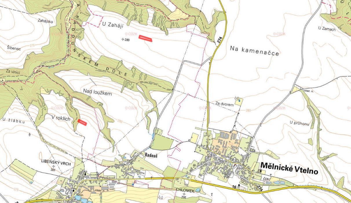 Celkem tak prodáváme 5 954 m2 kvalitní orné půdy. Katastrální území Vysoká Libeň a Radouň spadají pod obec Mělnické Vtelno, které se rozkládá asi osmnáct kilometrů východně od Mělníka. Oblast je klimaticky příznivá pro pěstování i náročnějších plodin.