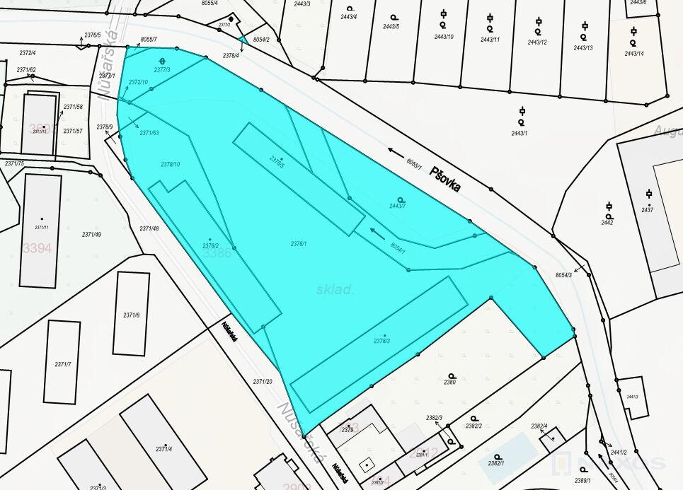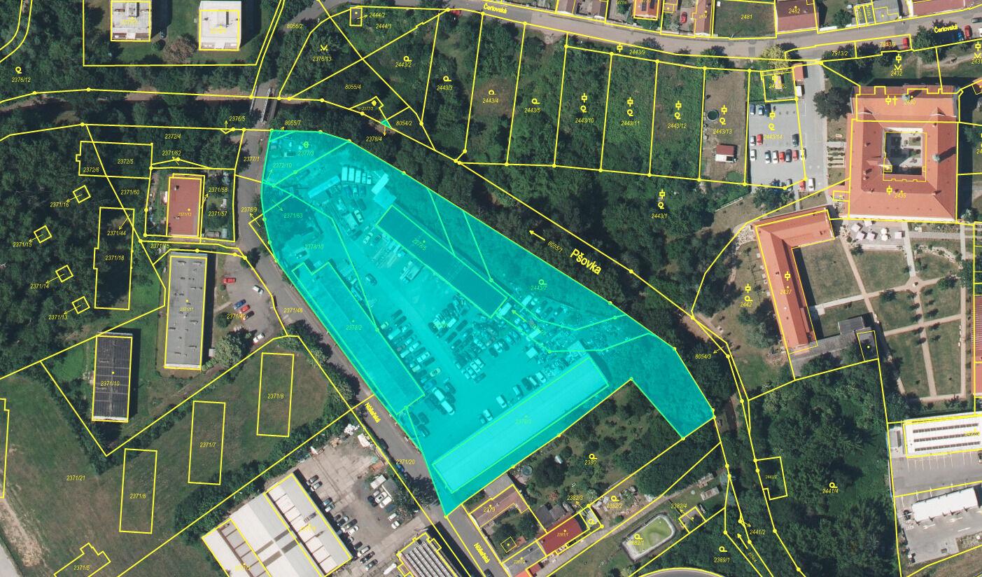 Exkluzivně nabízíme víceúčelový areál v ulici Nůšařská, Mělník I. Pozemky areálu o výměře 10.081 m2 se nacházejí, z hlediska územního plánu, v ploše označené SK - smíšená obytná - komerční, s hlavním polyfunkčním využitím zahrnujícím bydlení v bytových domech a občanské vybavení, zejména obchod a služby. Maximální výška budoucích staveb je stanovena do 15 m. Areál má tedy potenciál výstavby 4 - 5ti patrových bytových domů. V současné době jsou na pozemcích celkem tři objekty. Garáže a jednotlivé koje, dále montovaná zateplená hala, rozdělená do několika samostatných částí a původní tesko barák. Prostory areálu jsou v současné době pronajaty. Do areálu je přiveden plyn, eletřina a voda. V zatepleném objektu má každá pronajatá část svůj vlastní plynový kotel a elektřinu s vlastním odpočtem. Garáže nejsou vytápěny a v tesko baráku jsou elektrické přímotopy. Kanalizace je svedena do jímky na pozemku. Doporučuji prohlídku.