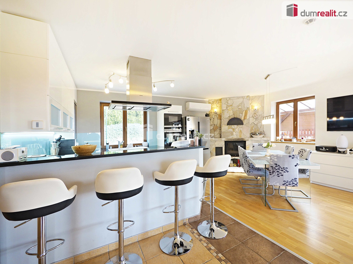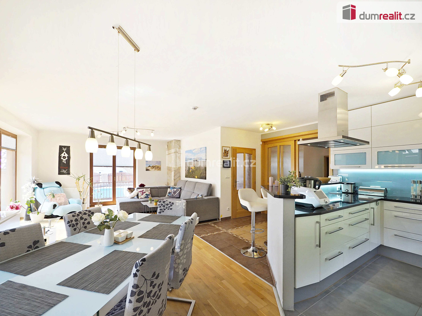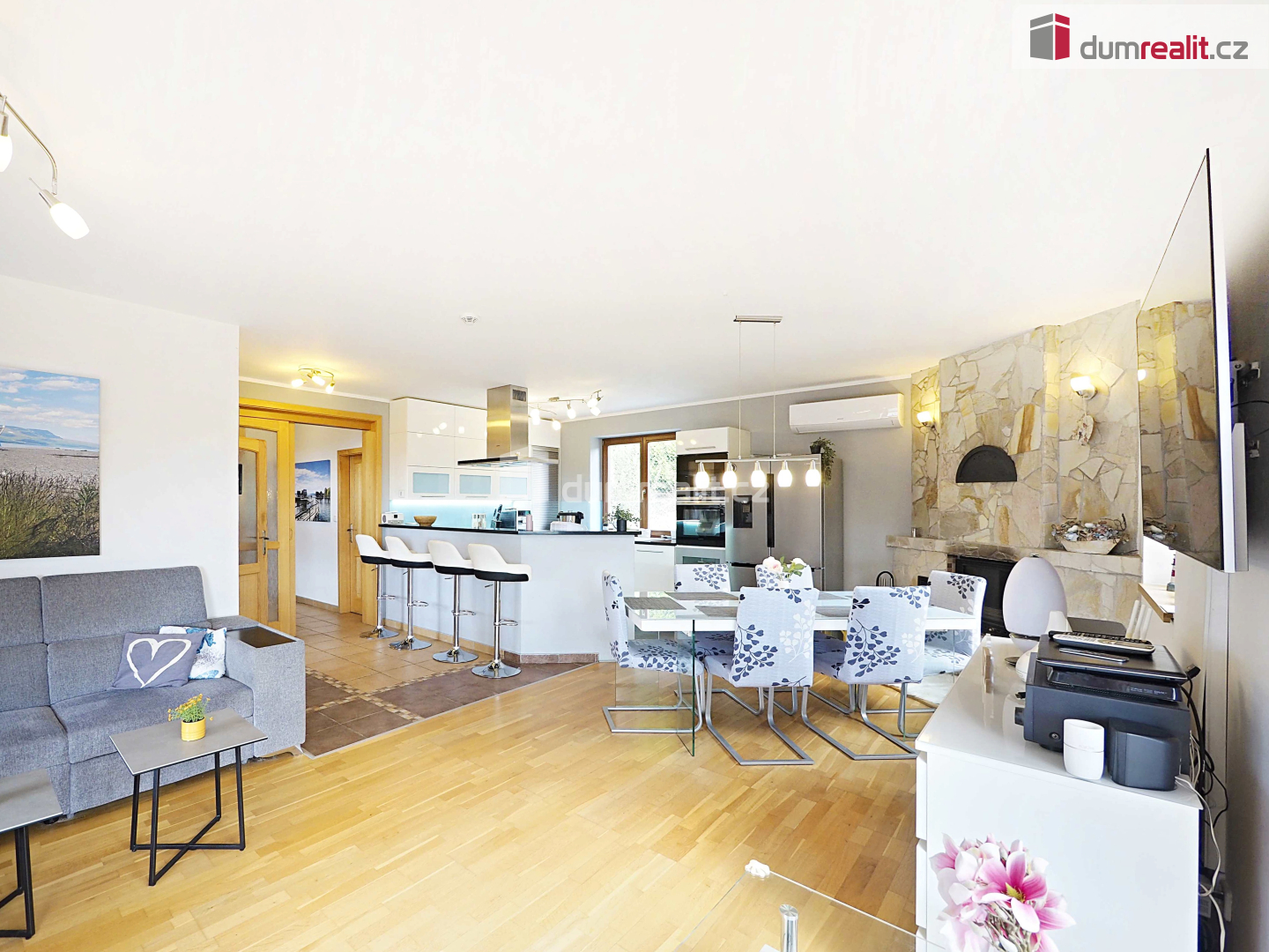 Právě pro Vás mám nabídku možného prodeje rodinného domu. Domu, který leží na klidném místě v městské části Mělník-Chloumek. Tento dům byl postaven v roce 2009 a je koncipován jako 5+kk o celkové velikosti užitné plochy 177 m² s garáží o velikosti 26 m². Na pozemku je dále bazén a zastřešená terasa orientovaná na východní stranu s výhledem do kraje. Tato poloha umožňuje nerušené posezení s grilováním či jen jako relaxaci. V přízemí domu se nachází prostorné zádveří, chodba s dřevěným schodištěm, technická místnost, komora, koupelna a pokoj. Dominantu přízemí domu však tvoří obývací pokoj s kuchyňským koutem a krbem. Z obývacího pokoje je přístup na terasu. Krb, resp. krbová vložka je s výměníkem do ústředního topení. Vytápění a ohřev vody zajišťuje plynový kotel se zásobníkem na teplou vodu. Kuchyň je z kvalitních materiálů, pracovní deska je z kamene. Samozřejmostí je indukční deska a kvalitní spotřebiče. V 2.NP se nachází tři pokoje, koupelna, wc, šatna a chodba. Okna v domě jsou dřevěná s izolačním dvojsklem. Podlahové krytiny jsou keramika či dřevo. Dřevěné jsou i veškeré dveře v domě a již zmíněné schodiště. Kvalitu bydlení pak podtrhuje klimatizace v přízemí. Samozřejmostí je alarm a kamerový systém. Příjezd k domu je po zpevněné komunikaci. Možnost parkování je pak ve zmíněné garáži, nebo na cestě u domu, která je opatřena bránou s elektrickým pohonem a sdílená s majitelem sousedního domu. Kousek od domu je autobusová zastávka, školka, místní obchod a restaurace v docházkové vzdálenosti. Možnosti rekreace splní místní les či blízké kokořínské údolí. Do centra Mělníka je to pak cca 2 km, kde se již nachází kompletní občanská vybavenost. Pro bližší informace volejte makléře. Ev. číslo: 652258.