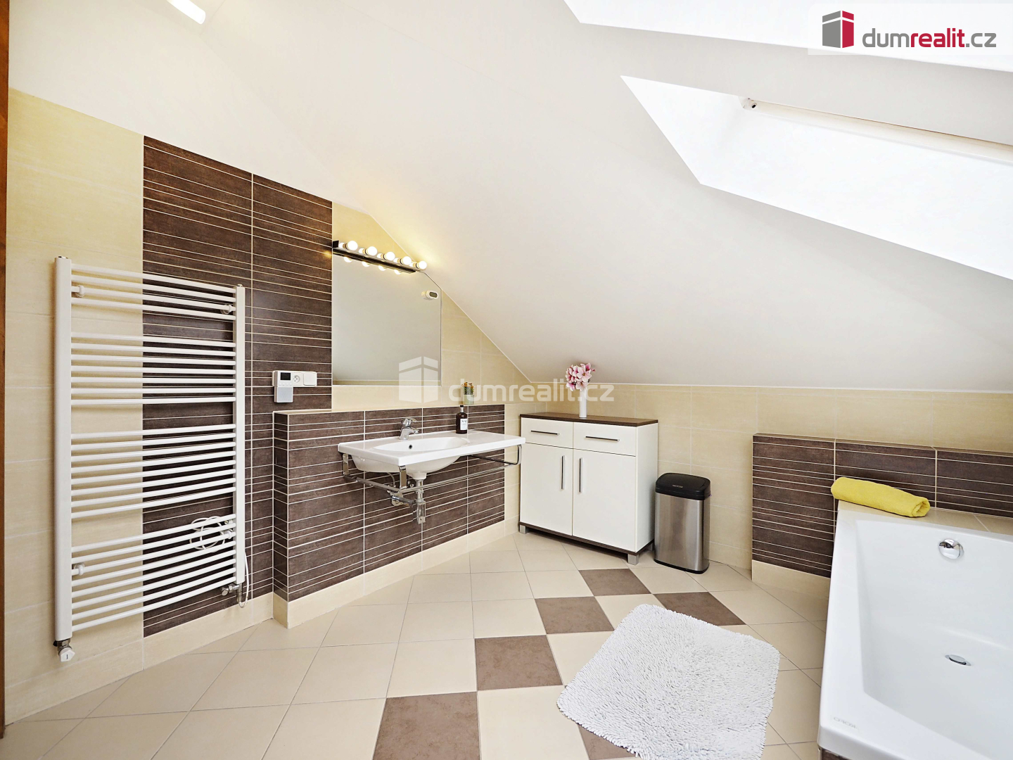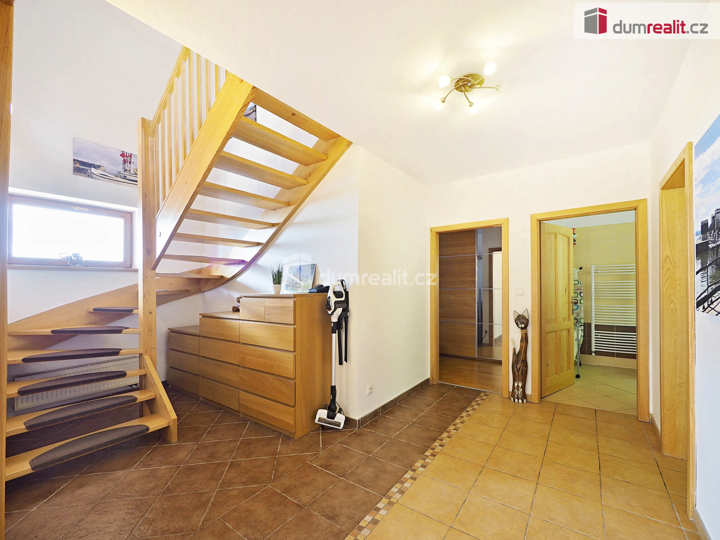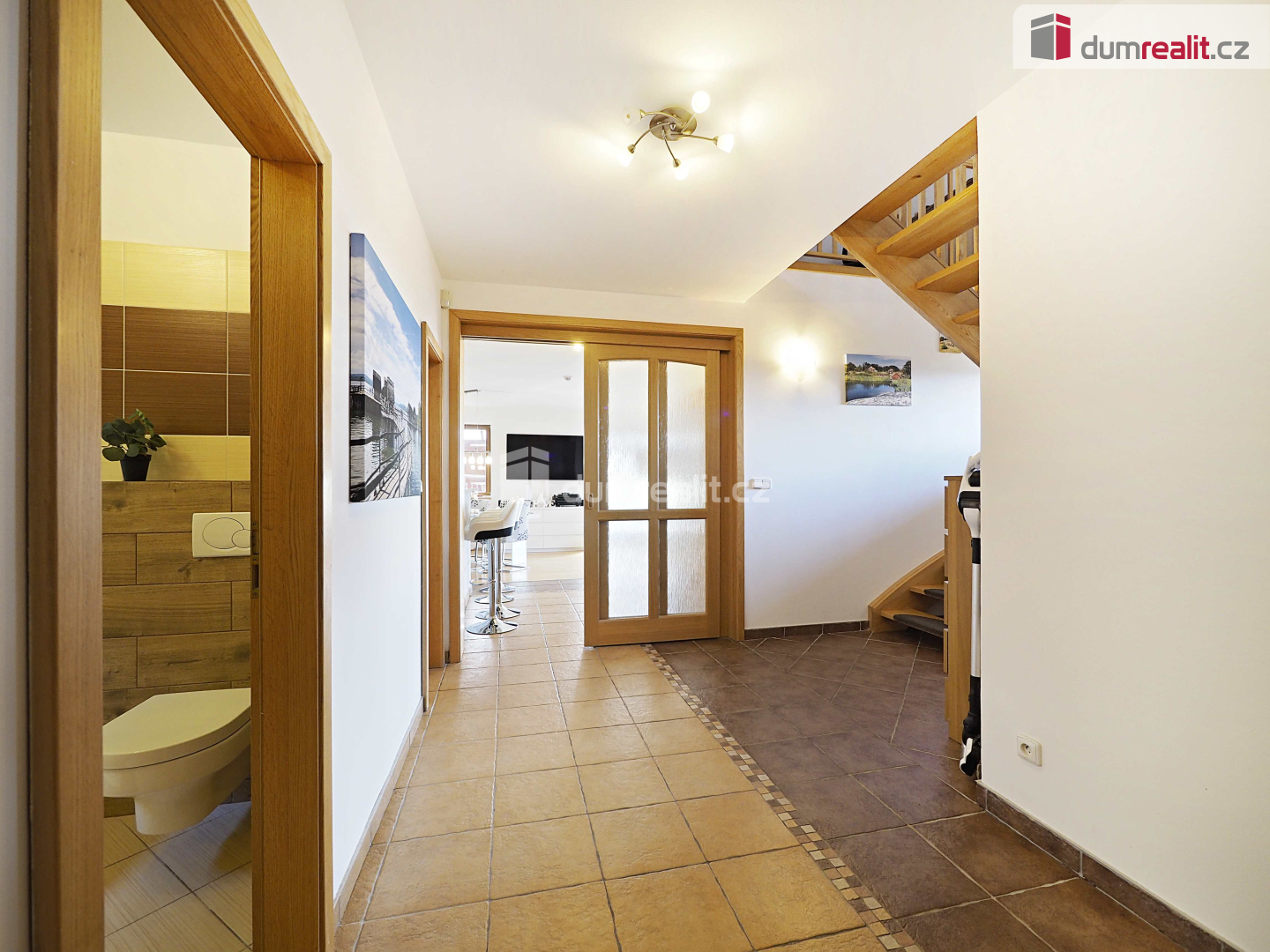 Právě pro Vás mám nabídku možného prodeje rodinného domu. Domu, který leží na klidném místě v městské části Mělník-Chloumek. Tento dům byl postaven v roce 2009 a je koncipován jako 5+kk o celkové velikosti užitné plochy 177 m² s garáží o velikosti 26 m². Na pozemku je dále bazén a zastřešená terasa orientovaná na východní stranu s výhledem do kraje. Tato poloha umožňuje nerušené posezení s grilováním či jen jako relaxaci. V přízemí domu se nachází prostorné zádveří, chodba s dřevěným schodištěm, technická místnost, komora, koupelna a pokoj. Dominantu přízemí domu však tvoří obývací pokoj s kuchyňským koutem a krbem. Z obývacího pokoje je přístup na terasu. Krb, resp. krbová vložka je s výměníkem do ústředního topení. Vytápění a ohřev vody zajišťuje plynový kotel se zásobníkem na teplou vodu. Kuchyň je z kvalitních materiálů, pracovní deska je z kamene. Samozřejmostí je indukční deska a kvalitní spotřebiče. V 2.NP se nachází tři pokoje, koupelna, wc, šatna a chodba. Okna v domě jsou dřevěná s izolačním dvojsklem. Podlahové krytiny jsou keramika či dřevo. Dřevěné jsou i veškeré dveře v domě a již zmíněné schodiště. Kvalitu bydlení pak podtrhuje klimatizace v přízemí. Samozřejmostí je alarm a kamerový systém. Příjezd k domu je po zpevněné komunikaci. Možnost parkování je pak ve zmíněné garáži, nebo na cestě u domu, která je opatřena bránou s elektrickým pohonem a sdílená s majitelem sousedního domu. Kousek od domu je autobusová zastávka, školka, místní obchod a restaurace v docházkové vzdálenosti. Možnosti rekreace splní místní les či blízké kokořínské údolí. Do centra Mělníka je to pak cca 2 km, kde se již nachází kompletní občanská vybavenost. Pro bližší informace volejte makléře. Ev. číslo: 652258.