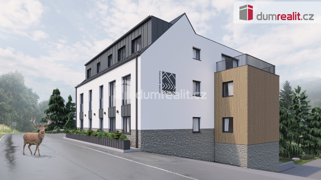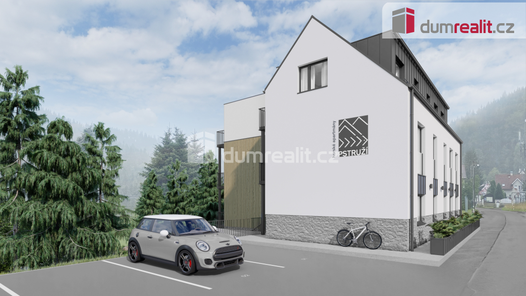 V exkluzivním zastoupení zajišťujeme prodej apartmánů v tomto unikátním projektu. Apartmány různých velikostí od 1+KK po 3+KK v krásném "komorním" apartmánovém domě, ve kterém je pouze 9 bytů a je přímo u hlavní nástupní stanice lanovky (50 m) Pstruží-Plešivec. Tento nabízený apartmán je 3+KK o velikosti 69 m²+balkon 19 m² je nabízen v ceně s jeho kompletním vybavením. Zpracování všech apartmánů je ve vysokém standardu-celoplošné podlahové vytápění, kvalitní zařizovací předměty v koupelnách a WC, vstupní a interiérové dveře, plovoucí podlahy zn. Egger, velkoformátové dlažby a obklady, Walk-in sprchové kouty. Každý apartmán má vlastní elektrokotel zn. Protherm ( s dálkovým ovládáním) se zásobníkem vody zn. Ariston, rozvod WI-FI a TV v každém pokoji. Ke každému bytu bude náležet jedno parkovací stání a prostor s uzamykatelnými skříňkami na lyžařské vybavení a společný prostor pro skladování jízdních kol. Dále příprava pro kamerový systém domu, příprava pro fotovoltaiku, čistírna odpadních vod, zastřešená pergola v jednání SVJ. Objekt je o třech nadzemních a jednom podzemním podlaží. Ceny od 3.350.000 do 7.750.000 Kč vč. DPH. Apartmány jsou již dokončeny, zkolaudovány a připraveny pro Vaši prohlídku, v nabídce poslední dva apartmány (1+kk a tento 3+kk). Koupi je možno financovat hypotéčním úvěrem, který Vám v případě zájmu můžeme zajistit. Ev. číslo: 649717.
