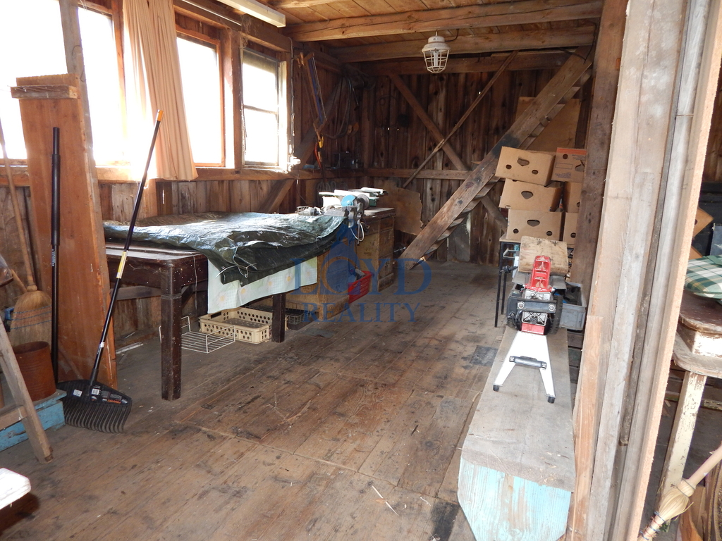 Na pozemku se nachází kůlna s dřevníkem a terasa s krbem. Parkování je zajištěno pro dvě auta před domem u hlavní komunikace.