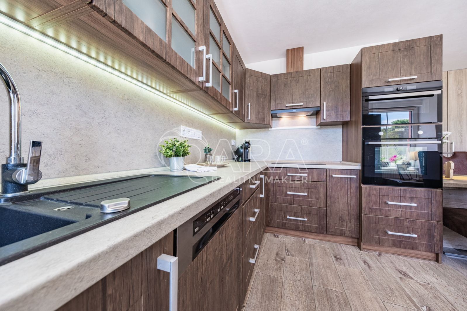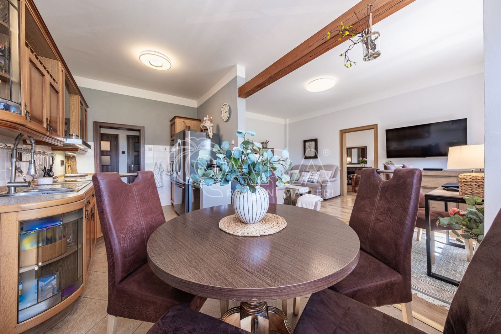 Dnešní dispozice domu je 1+kk v přízemí a v prvním patře byt 3+kk, garážové stání udělané z bývalého průjezdu domu, venkovní posezení s pergolou, krytý bazén se slanou vodou, udržovaná okrasná i užitková zahrada a jako bonus kamenná stodola, a k tomu fotovoltaika a tepelné čerpadlo voda-vzduch.