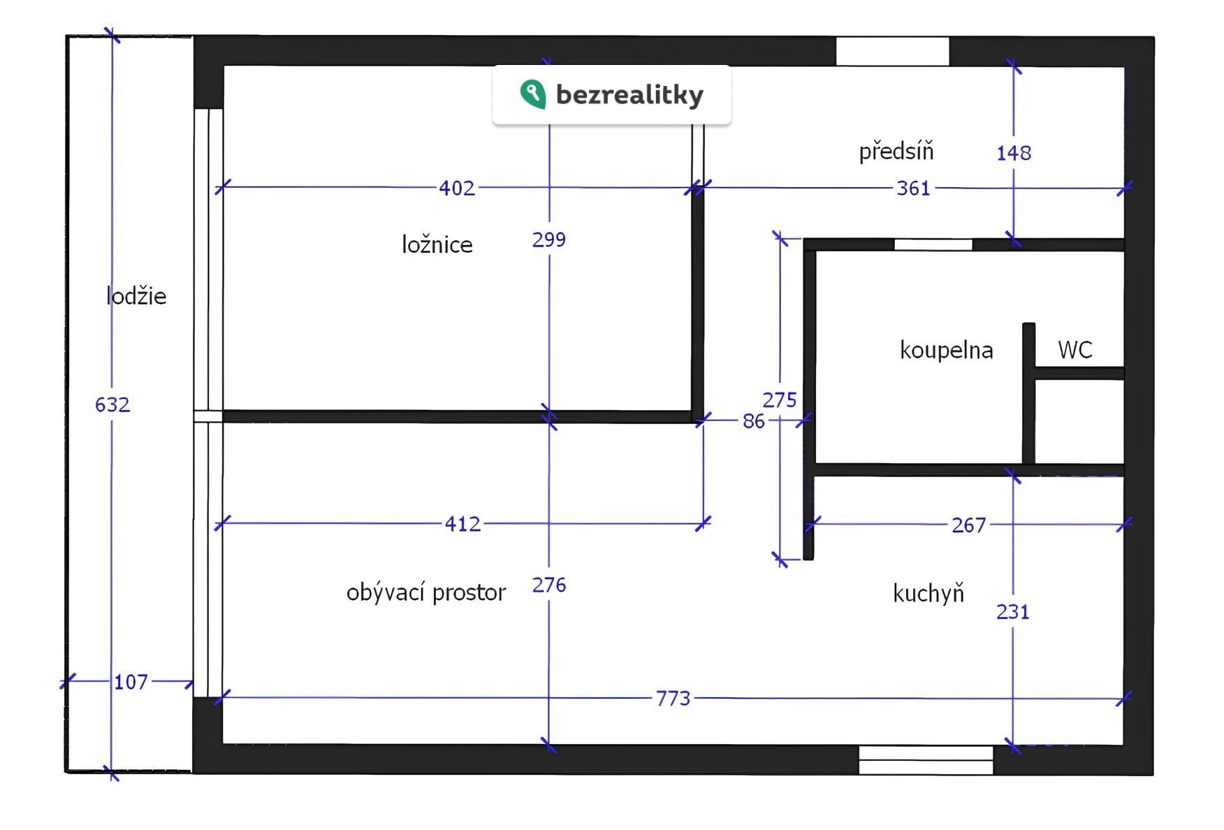 K prodeji nabízím krásný, nově zrekonstruovaný byt o dispozici 2kk (původně 2+1) o celkové ploše 58,7 m², z toho 43,6 m² podlahová plocha, 6,7 m² lodžie a 8,4 m² sklep.