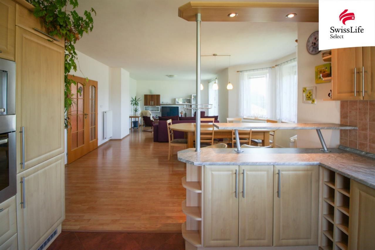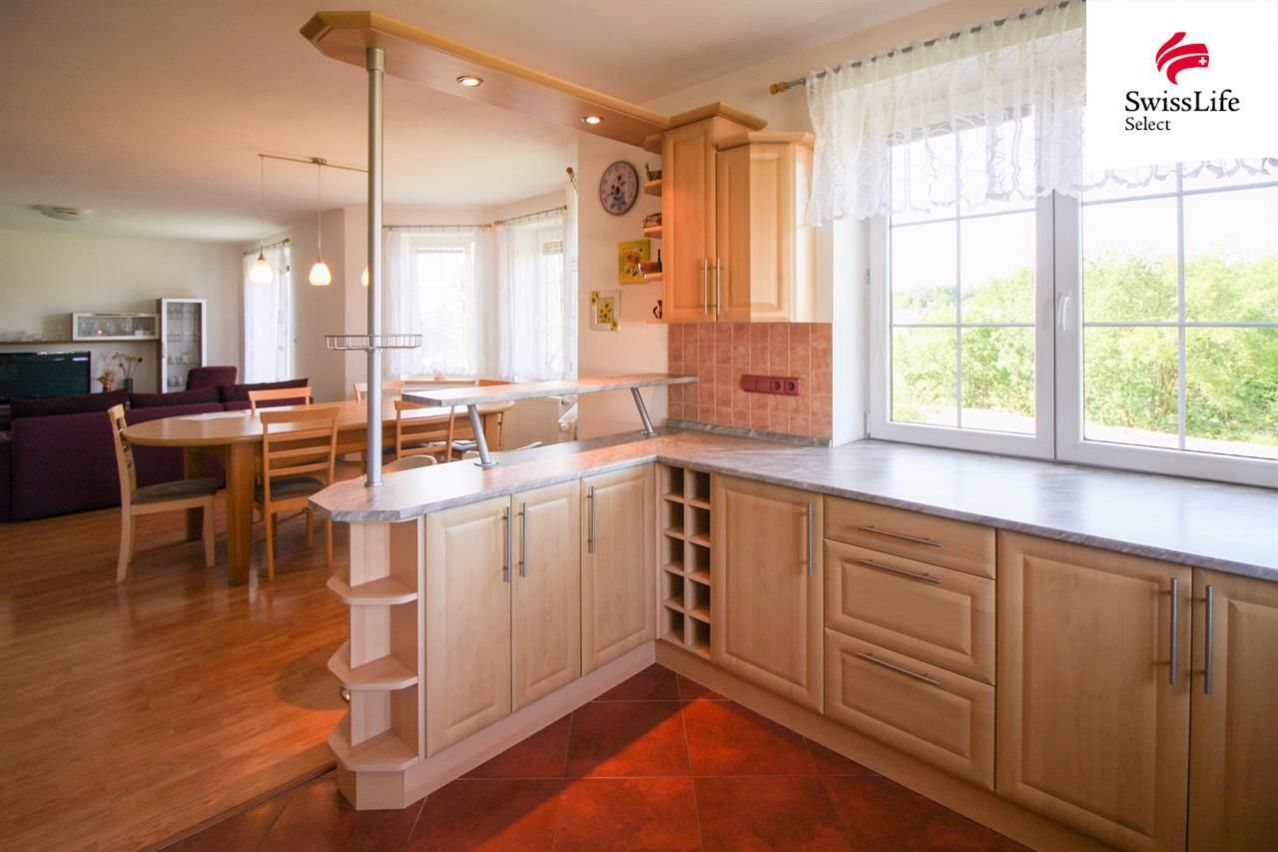 Nabízíme k prodeji rodinný dům o dispozici 5+kk s garáží, umístěný na prostorném pozemku o celkové výměře 2 099 m v klidné obci Meziříčko u Měřína, v kraji Vysočina. Nemovitost byla zkolaudována v roce 2009 a nabízí komfortní bydlení s dostatkem prostoru jak v interiéru, tak v okolí domu. Dům je rozdělen do tří úrovní. V přízemí se nachází obytná zóna s propojeným obývacím pokojem, kuchyní a jídelním koutem, které tvoří jeden otevřený a funkčně uspořádaný celek. Po vstupu do domu je k dispozici šatna, která nabízí úložný prostor pro každodenní potřeby. Kuchyně je doplněna o praktickou komoru na potraviny. Na tomto patře se dále nachází samostatné WC a koupelna. V horním podlaží je umístěna prostorná ložnice se šatnou, tři další samostatné pokoje, které mohou sloužit jako dětské pokoje, hostinské místnosti nebo pracovny, a další samostatná koupelna a toaleta. Nachází se zde také samostatná pracovna, která poskytuje klid pro práci z domova. Sklepní část domu je velmi praktická a členitá najdeme zde garáž, dílnu, prádelnu, kotelnu s uhelnou a potravinový sklep. Dům je vytápěn tuhými palivy, je napojen na vlastní studnu a vybaven domovní čističkou odpadních vod, což snižuje závislost na inženýrských sítích a přispívá k dlouhodobě udržitelnému provozu domácnosti. Pozemek obklopující dům poskytuje dostatek soukromí, prostor pro zahradničení i případné hospodářské využití. Celkový charakter nemovitosti osloví především ty, kteří hledají bydlení v klidném venkovském prostředí s rozumným dojezdem do větších měst a napojením na dálnici D1 do Velkého Meziříčí je to zhruba 10 minut jízdy, Jihlava i Brno jsou dobře dostupné. Obec Meziříčko se nachází v oblasti Českomoravské vrchoviny a je obklopena lesy, loukami a rybníky, které jsou ideální pro volnočasové aktivity turistiku, cyklistiku i houbaření. V nedalekém Měříně najdete základní občanskou vybavenost školu, školku, obchody i zdravotnická zařízení. Za návštěvu v širším okolí stojí například zámek ve Velkém Meziříčí, poutní místo Křižanov, rozhledna na Fajtově kopci nebo barokní památky v Třebíči, která je zapsána na seznamu UNESCO. Tato nemovitost je vhodná pro rodinné bydlení nebo jako víkendové sídlo pro ty, kteří hledají dostatek prostoru a klid mimo městský ruch, ale zároveň nechtějí být zcela odříznuti od služeb a dopravního spojení. Swiss Life Select a.s. Vám nabízí možnost vypracování nezávislého porovnání a tvorby hypotéky na míru dle Vašich požadavků a možností. Díky exkluzivním podmínkám u finančních institucí, perfektní znalosti trhu a kvalitnímu klientskému servisu se můžete spolehnout, že Vám doporučíme nejlepší financování Vaší nemovitosti a pomůžeme vyřídit veškeré náležitosti. Pro více informací kontaktujte makléře.