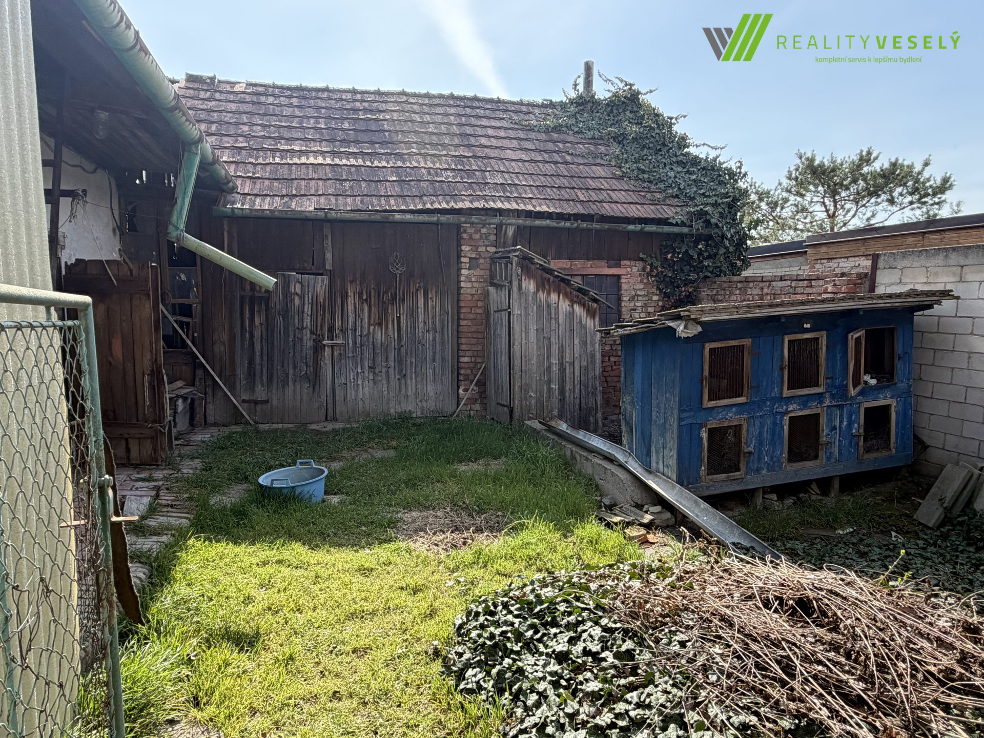 Za domem se nachází uzavřený dvůr se zahradou, který poskytuje dostatek soukromí a prostoru pro odpočinek, zahradničení či posezení s rodinou. Součástí pozemku je také stodola, kterou lze využít jako dílnu, sklad nebo ji přestavět dle vlastních potřeb.