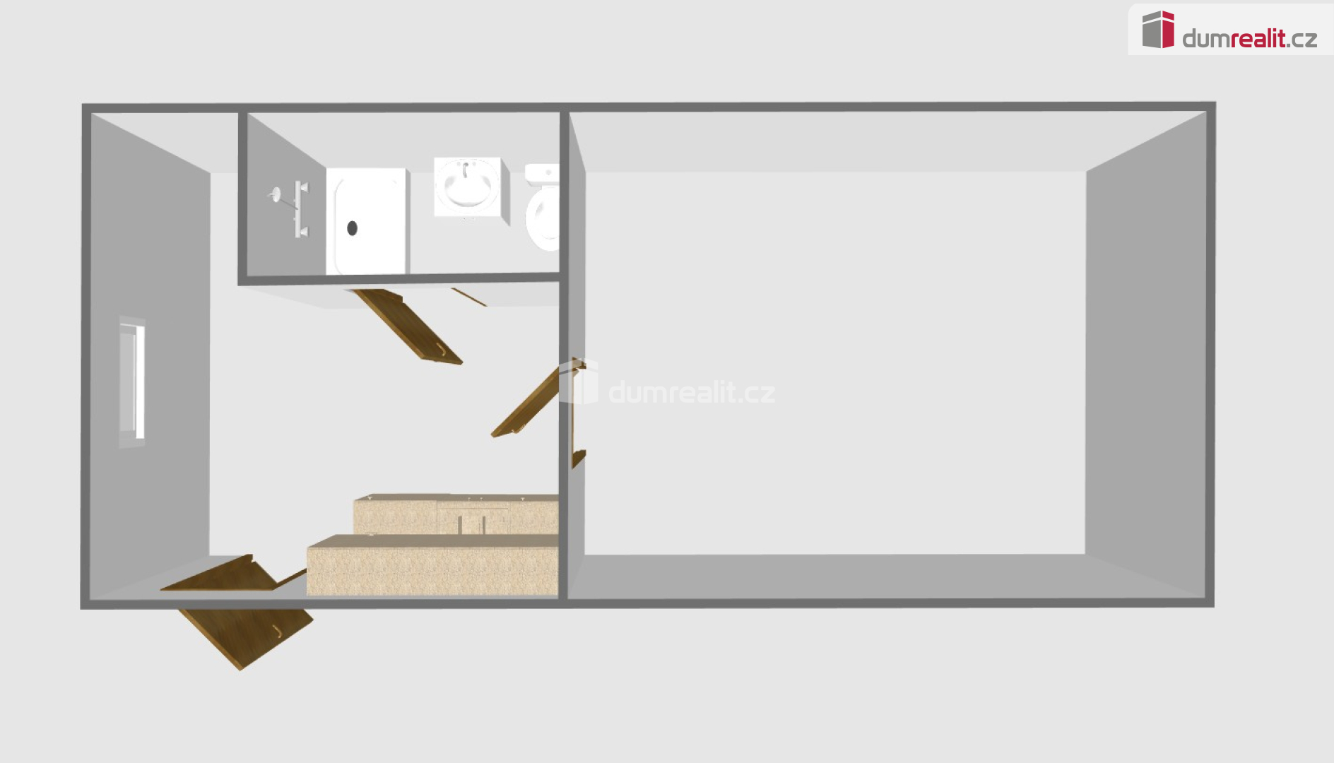 Obývací místnost: Slouží zároveň jako ložnice a obývací pokoj.
