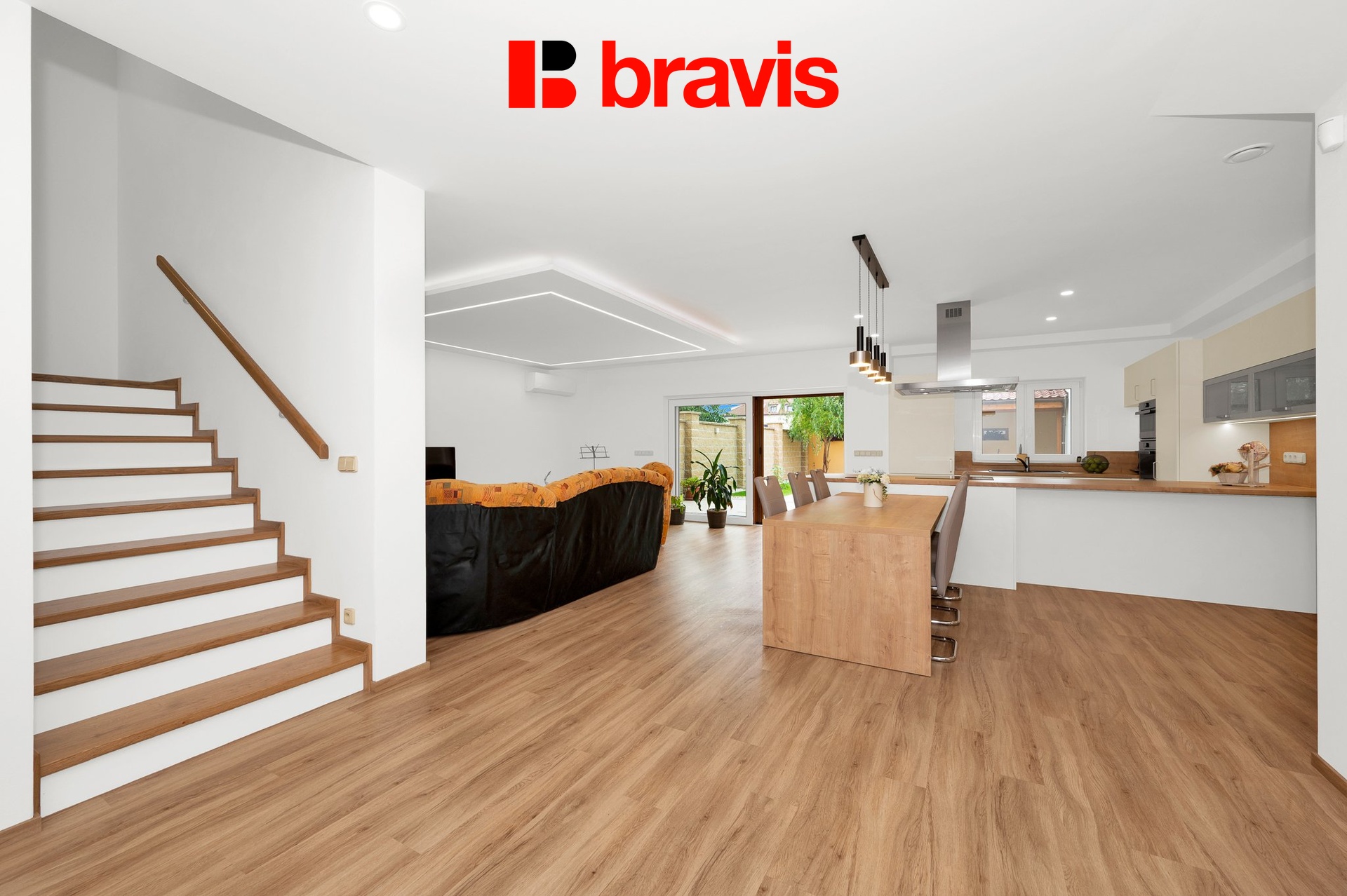 Můžete vlastnit dva domy v jednom aneb dvě bytové jednotky se samostatnými vstupy, dvě nadstandardně velké dvojgaráže, zahradu a zahradní domek s terasou. Větší bytová jednotka/RD je o dispozici 6+kk, užitné ploše 263 m² plus dvojgaráž o výměře 54 m² a menší bytová jednotka/APA o dispozici 3+kk, užitné ploše 92 m² plus dvojgaráž o výměře 65 m² - ideální kombinace pro potřeby dnešní moderní rodiny. Rodinný dům (obě bytové jednotky) má celkovou podlahovou plochu 474 m². Zahradní domek/sklad s terasou pak 44 m².