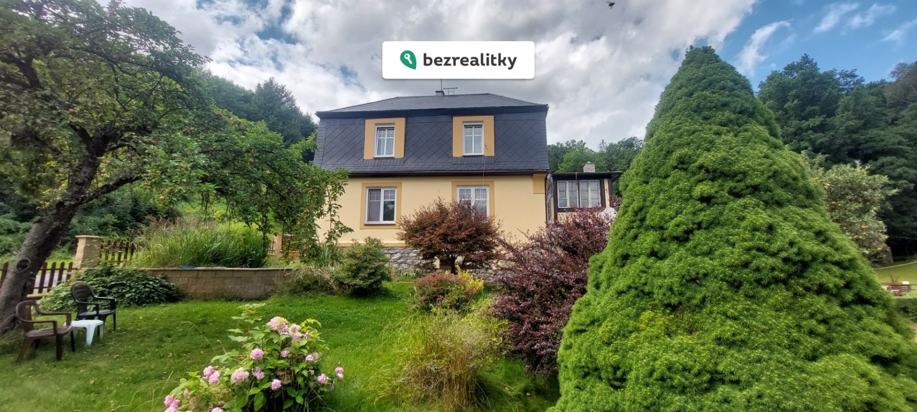 Dům je umístěn nad vesnicí, mimo záplavovou oblast, uprostřed nádherného prostředí s výhledem do údolí a na Zlatohorskou vrchovinu s rozhlednou Biskupská Kupa. Dva kilometry od státní hranice s PL, čtyři km od města Glucholazy, 16 km od Lázně Jeseník a dvacetpět km od Nysy. Padesát metrů od domu vede Moravská cyklostezka EV9, známá také jako Jantarová stezka od Baltu k Jadranu. Pozemek se skládá ze svažující zahrady, kde v nejnižším místě teče potok a je malý rybník, který může být napájen z potoka a dále pozemek stoupá jížním svahem až na hranici pozemku, který tvoří les.Zde se naskýtá umístit dřevěnou chatku, která by umožňovala netradiční ubytování,populární dnes zvláště mezi mladými lidmy. Příroda za plotem skýtá možnost relaxace takřka v divoké přírodě. V okolí nemovitosti jsou ještě dvě další nemovitosti, ale další nová výstavba nebude nikdy povolena z důvodu ochrany vodního zdroje, který je nad stávajícími pozemky a nedostupnosti další infastruktury. Proto je tedy nemovitost vhodná pro ty, kdo hledají klid, ale i nechtějí být daleko od civilizace a zároveň chtějí, aby tento stav byl uchován i do budoucna. Nemovitost má potenciál využití i jako malý penzion na ubytování.